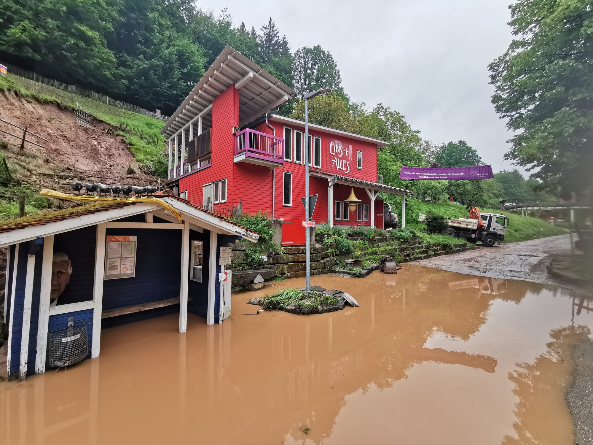 Der Starkregen am Sonntag (2.6.) hat auch das "Eins und Alles - Erfahrungsfeld der Sinne“ und die dazugehörige Einrichtung für Menschen mit geistigen Behinderungen in Welzheim unerwartet und hart getroffen. Eine Alarmierung gab es auch hier nicht. Bewohner und die Mitarbeiter im Nachtdienst wurden überrascht.
