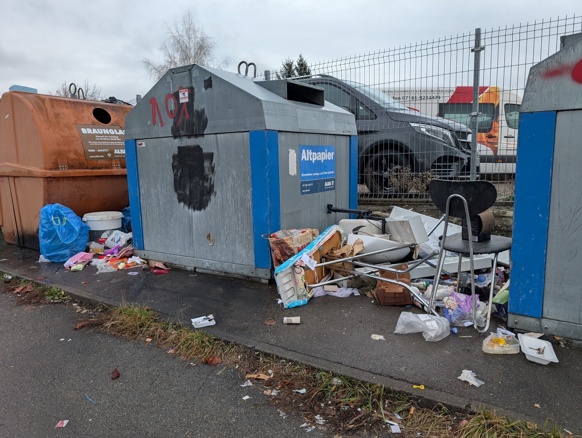 Kaputte Autoreifen, ausgediente Kinderwagen, Bürostühle oder überschüssige Wandfarbe: Abfall, der eigentlich ins Entsorgungszentrum gehört, wird in Welzheim regelmäßig illegal rund um Containerstandorte entsorgt. Insbesondere an der Hundsberger Straße finden sich allwöchentlich Müllablagerungen, die dort nicht hingehören. Was kann dagegen getan werden?