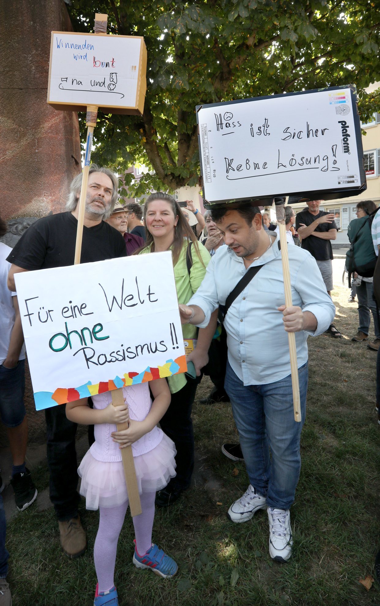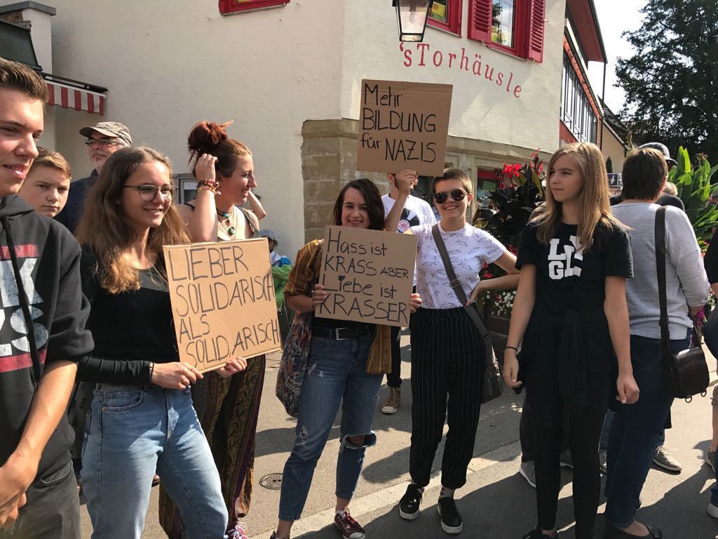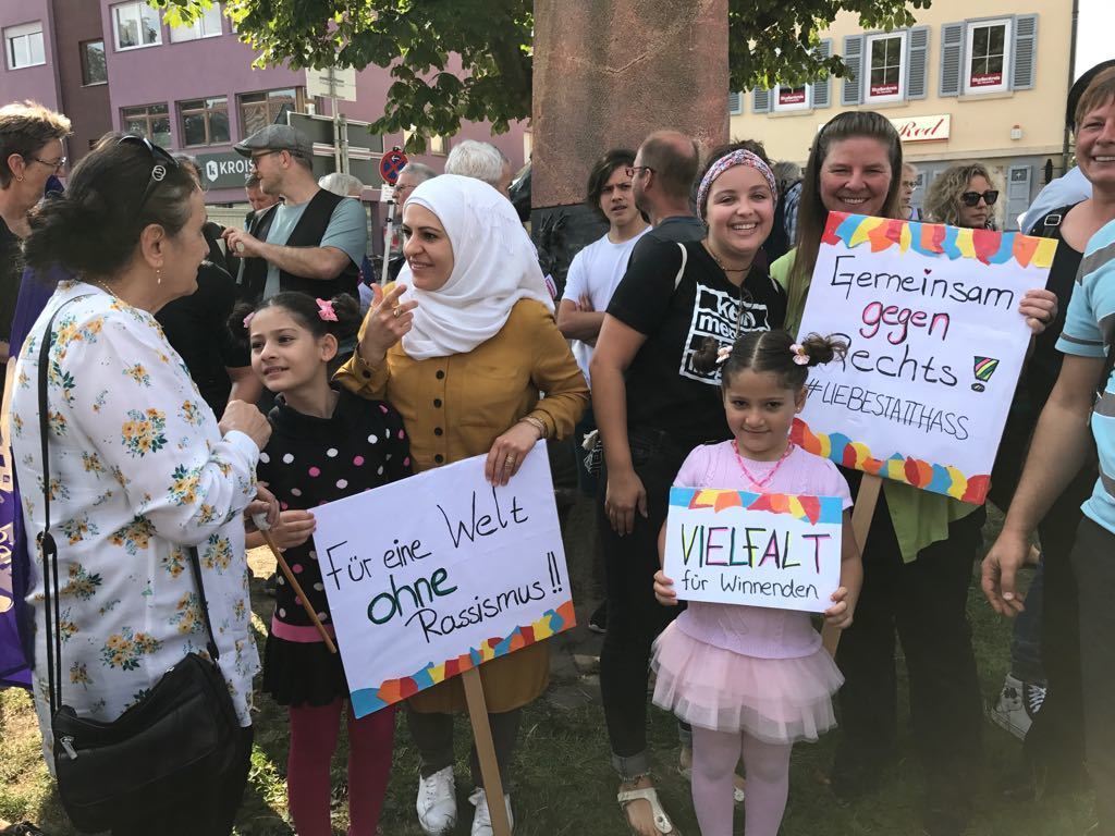 Anlass für die Kundgebung in Winnenden war ein bewaffneter Übergriff auf zwei afrikanische Asylbewerber in Winnenden am 30. August, die ins Bild der zunehmenden Ausländerfeindlichkeit in Deutschland passen, wie die die Hetzjagden gegen Ausländer in Chemnitz zeigten, so Tim Neumann, Sprecher des Bündnisses gegen Rechts. Auf selbst gemalten Transparenten drückten Teilnehmer ihre Haltung aus. "Rassismus ist keine Meinung sondern Ignoranz", hieß es oder: "Für Menschenrechte und Menschenwürde", "Hass ist sicher keine Lösung und "Winnenden wird bunt - na und!"