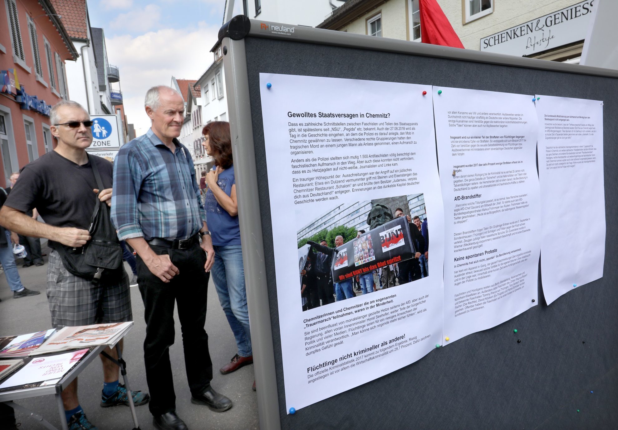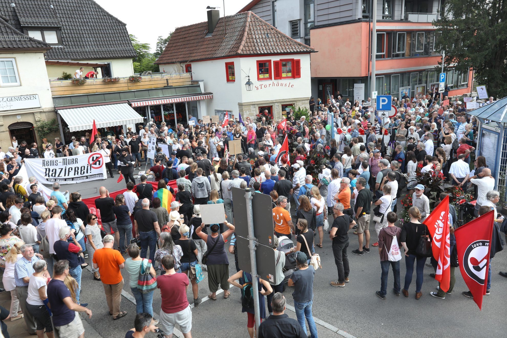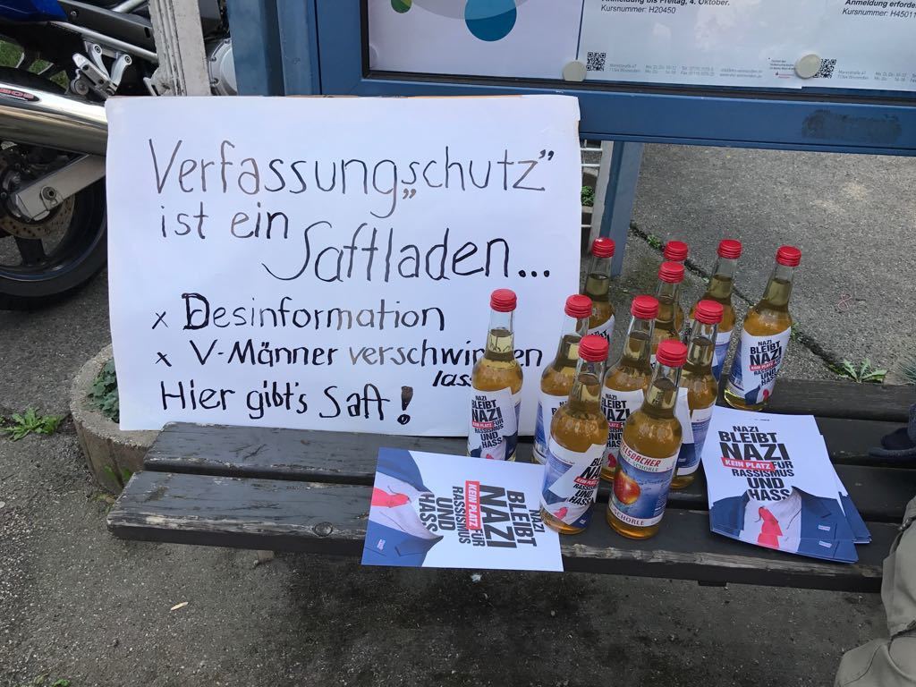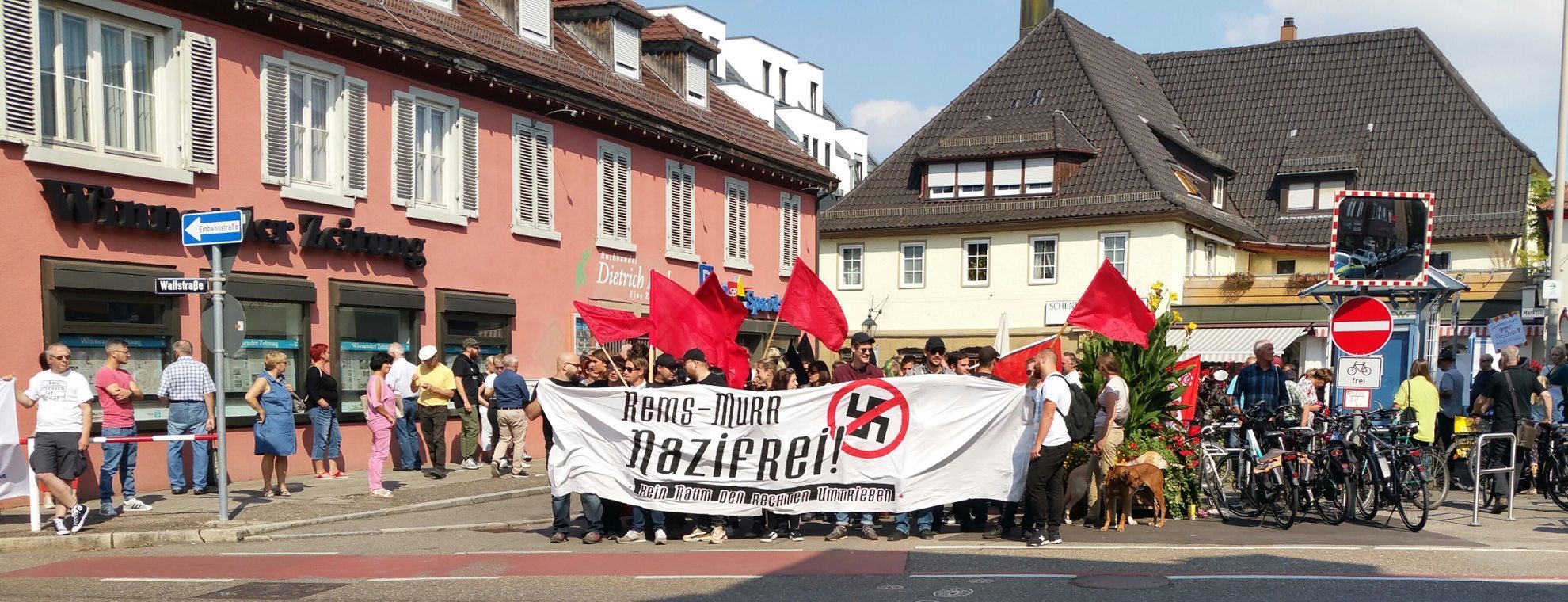 Dieter Böttcher aus Waiblingen erinnerte an die zunehmenden Übergriffe rechter Gruppen zwischen Rems und Murr. Im öfters seien Schmierereien im öffentlichen Raum zu sehen, das Haus eines Rudersberger Fotografen sei mehrfach attackiert worden und das Backnanger selbstverwaltete Jugendzentrum  schon häufiger Ziel von Rechtsradikalen gewesen. Die aktiven Nazis im Rems-Murr-Kreis verehrten offen Hitler-Deutschland und seien Anhänger einer sich besonders revolutionär und rebellisch gebenden Strömung innerhalb des faschistischen Spektrums, dem sogenannten autonomen Nationalismus. Böttcher forderte die Bürger auf, sich gegen Rechts zu engagieren, Kollegen und Freunde zu informieren und Nazipropanda zu entfernen.