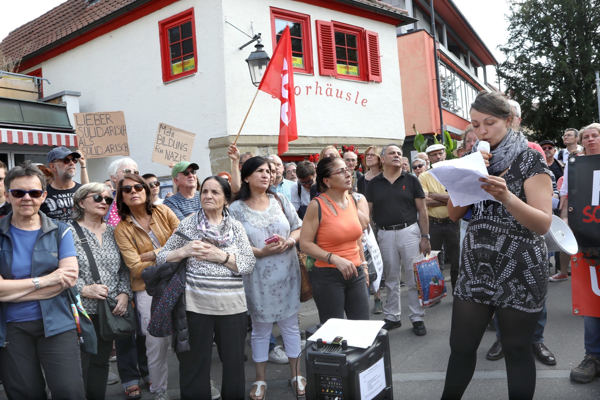 Kundgebung "Für eine Welt ohne Rassismus" in Winnenden. © Schmitzer