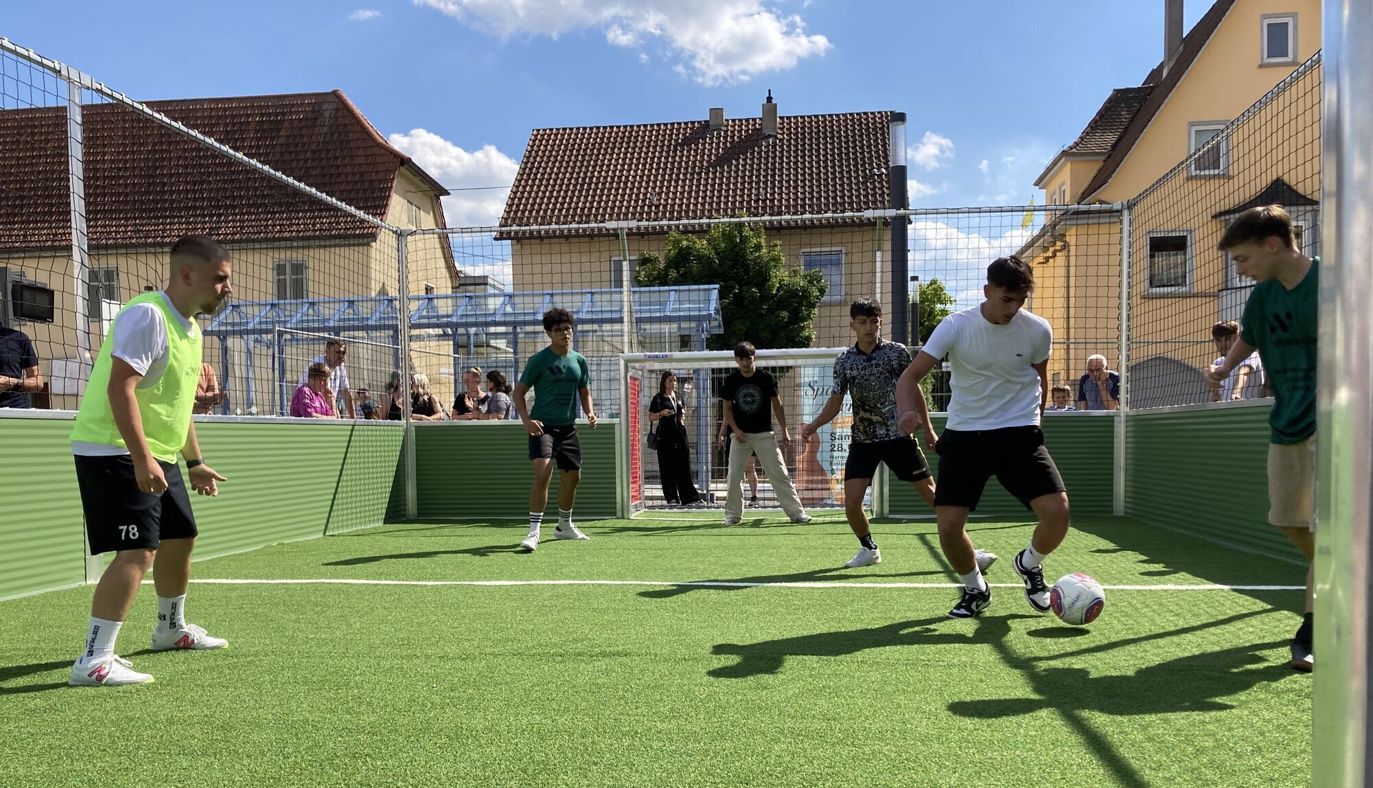 Winnenden. Die Bundesliga macht noch Sommerpause. In der Winnender Innenstadt hingegen rollt der Ball schon wieder. Mit einem spaßigen Kick wurde am Freitagnachmittag der „Soccer Court“, das Mini-Fußballfeld auf dem Kronenplatz, eingeweiht. Wir haben mitgebolzt und wissen jetzt: Das macht richtig Laune! Finanziert wurde das Fußballfeld komplett durch Spenden. Jetzt wird noch Geld für das Umfeld gesammelt.