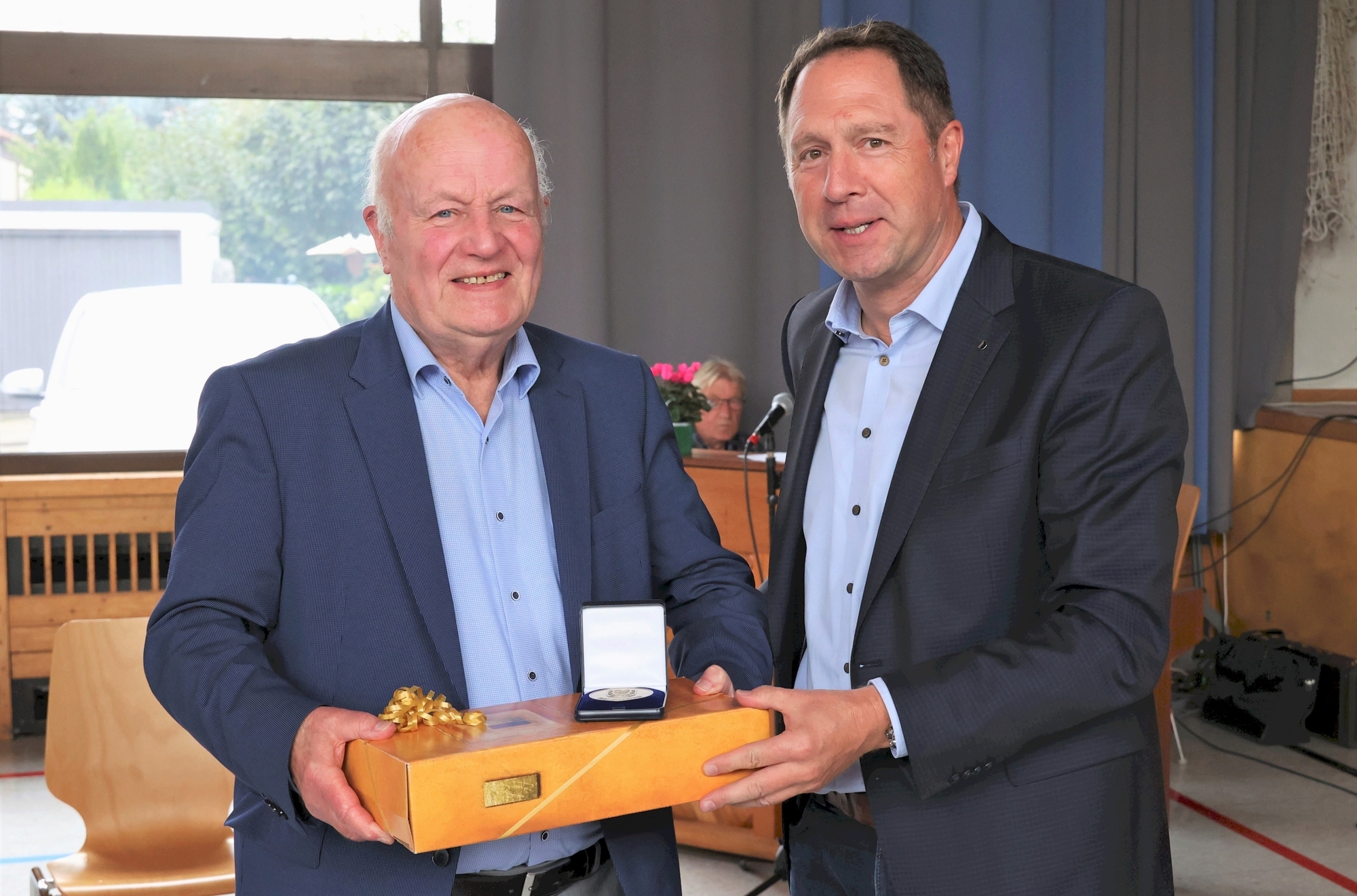 Besondere Überraschung für Martin Fischer: Oberbürgermeister Hartmut Holzwarth hat ihm die Bürgermedaille der Stadt Winnenden in Bronze überreicht.
