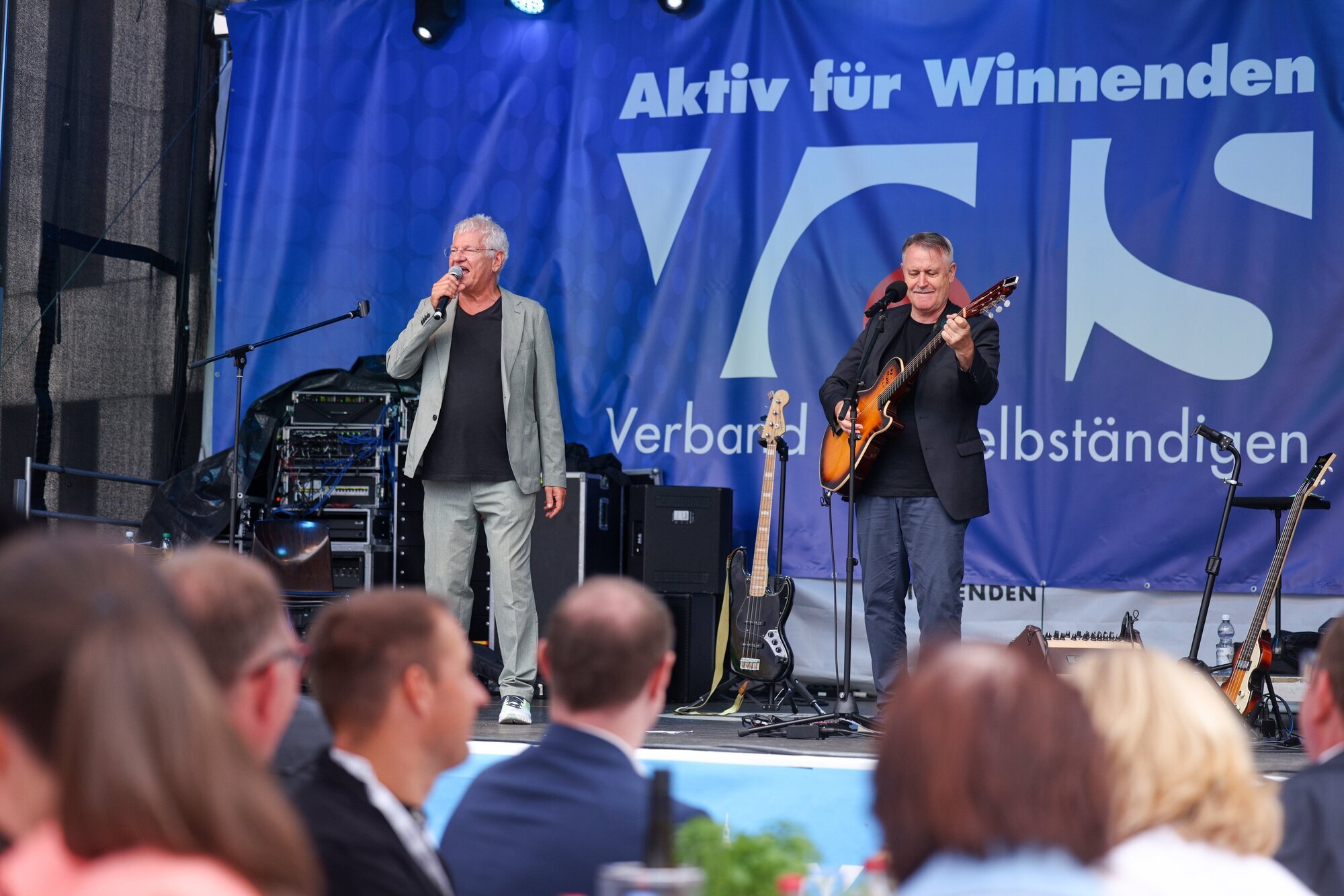 Winnenden. Den besten Spruch zum regnerischen City-Treff-Sonntagabend liefert Kabarettist Werner Koczwara am Montagmittag nach. Er zitiert gleich zu Beginn seines Auftritts auf der Marktplatzbühne Karl Valentin, den Münchener und Meister des hintergründigen Humors: „Wenn’s regnet, freu i mi. Weil, wenn i mi ned freu, regnet’s trotzdem.“ Bühne frei für den politischen VdS-Stammtisch. Ja, ja, politisch: Die Gäste Ernst Mantel und Werner Koczwara von der Ostalb bringen
