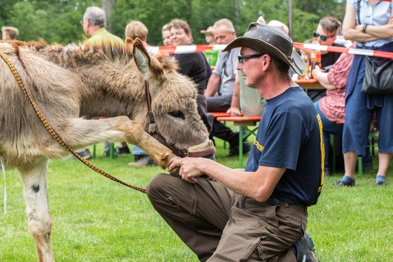 Sein erster Gedanke war damals jedoch: Ein Esel kommt ihm nicht ins Haus. „Ich bin doch nicht bekloppt“, sagt er. Aber: Kurz darauf war er dem Charme erlegen und hat sich einen Esel zugelegt. Das „Störrische“ und Eigensinnige seiner Schützlinge macht ihm gute Laune. „Sie können nicht ohne einander“, meint er. „Wären sie gemeinsam am Start, würde Filou nicht an Bruncher vorbeiziehen, obwohl er schneller ist, keine Ahnung, warum das so ist“, erzählt der Eselbesitzer.