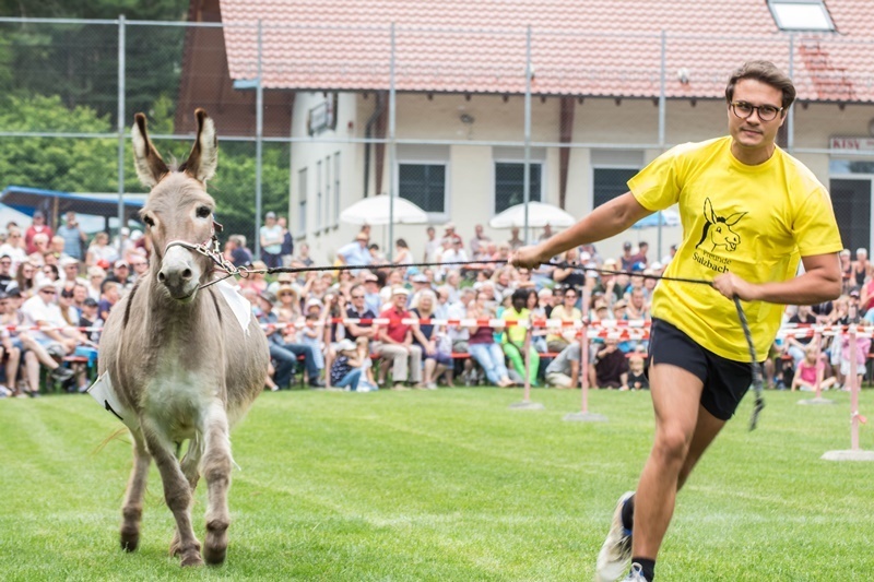 Berglen. „Auswechselspieler“ Pippo sorgt für eine Überraschung, Hanni entdeckt die Langsamkeit, und die Kraftreserven von Esel-Senior Benjamin reichen immerhin fürs Halbfinale. Eine putzmuntere Eselhorde sorgte mit ihrer Rennwilligkeit wie auch mit dem kompletten Gegenteil – mit sprichwörtlicher Sturheit – für jede Menge Spaß beim 14. Eselrennen.
