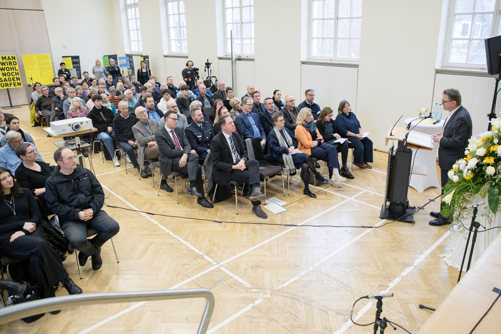 „Damals ist nah an gestern und gestern ist fast schon heute – das, liebe Leute, wird man ja wohl noch sagen dürfen.“ So lautete am Montagnachmittag der Schlusssatz eines Theaterstücks vierer Lessing-Gymnasiastinnen bei der Gedenkfeier für die Opfer des Nationalsozialismus am Zentrum für Psychiatrie Winnenden. Zuvor hatte bereits Sozialminister Manne Lucha (Grüne) den Bogen vom Gestern ins Heute geschlagen: Der Gedenktag sei „kein Ritual, er ist Verantwortung“, so Lucha. Erinnern heiße immer