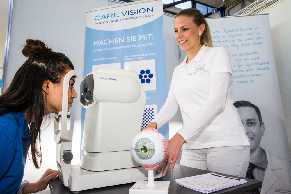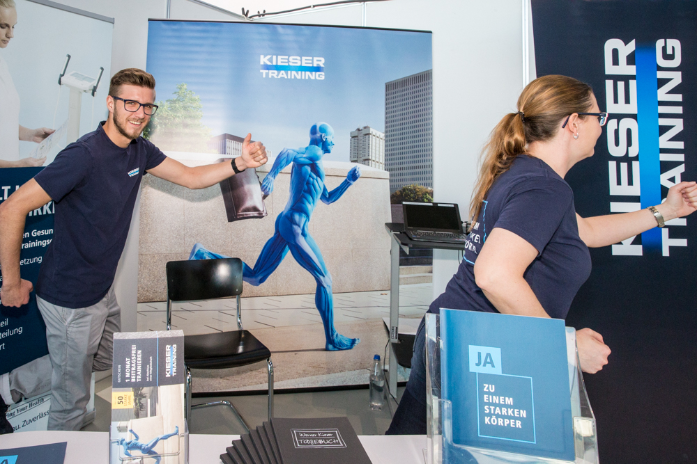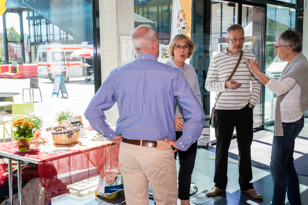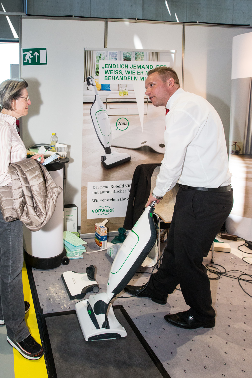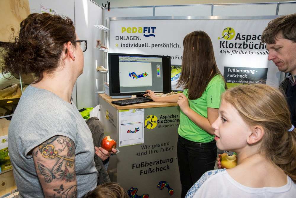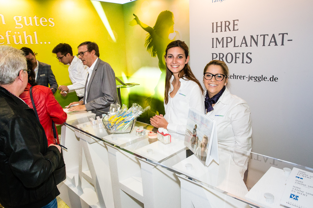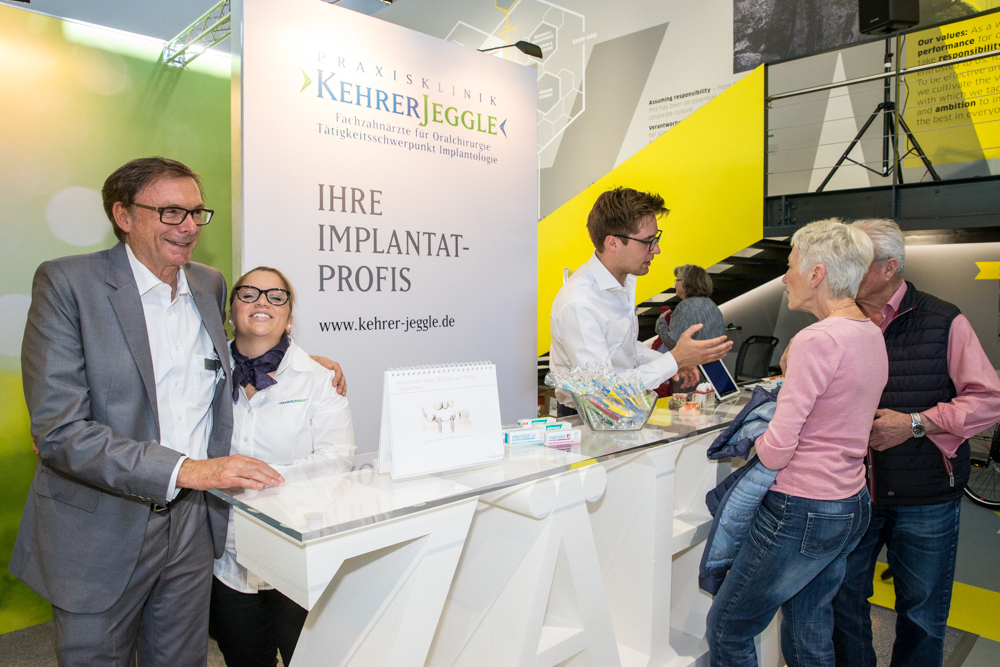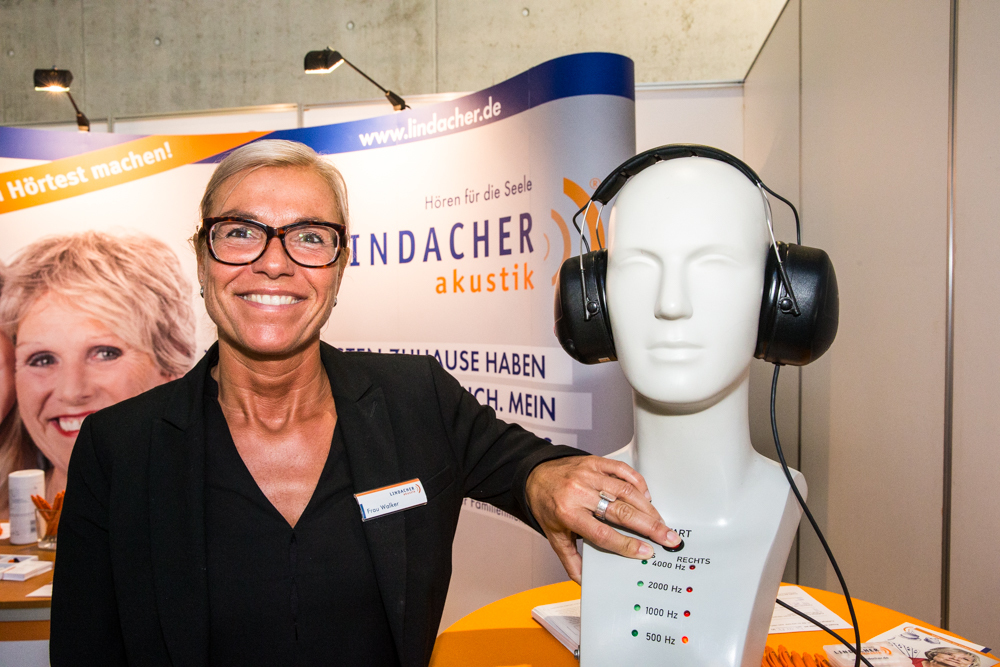 Mehr als 70 Besucher waren etwa im Vortrag „Feste Zähne an einem Tag“ des Oral-Chirurgen Dr. Ulrich Jeggle zu sehen. In Kärchers Experience-Center lockte dann ein Parcours entlang der Info-Stände von rund 50 Ausstellern, bei denen sich zu Stoßzeiten die Besucher drängten. Von „guten, schönen Gesprächen“ berichteten zufrieden die Mitarbeiter der AOK, die in gleich zwei Schichten angetreten waren. Dauernd im Gespräch waren auch die Mitarbeiterinnen von „lightlife women“, die eine frauenspezifische Variante des Abnehmens anboten, das, so Lena Bredow, „ohne Verbote und Einschränkungen im Einklang mit der weiblichen Natur arbeitet“. Ihre beiden Vorträge zum Thema im Auditorium waren voll besetzt.