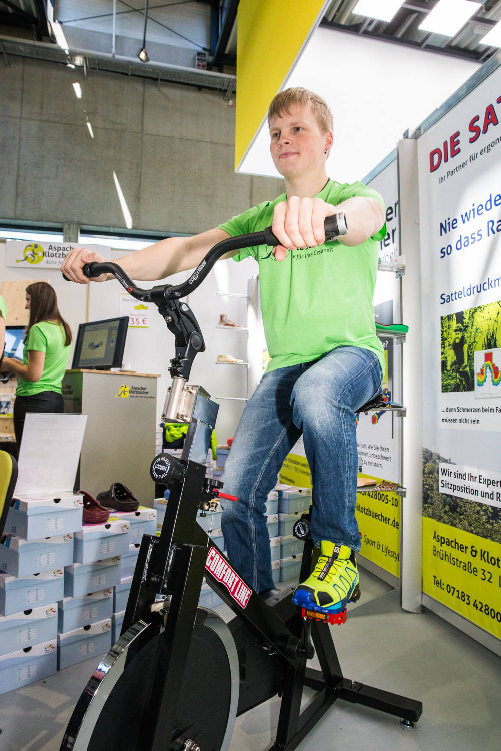 Gleich daneben klatschten indes die Fäuste beim Fitnessboxen aufeinander. Die aktiven Jungboxer Jens und Jörn ließen einen spektakulären Hagel von Stößen los, ohne sich wehzutun, während eine junge Frau daneben wohl zum ersten Mal in die großen Handschuhe schlüpfte und sich im Boxen als Selbstverteidigung unterweisen ließ. Markus Hütter von Charlies Boxschule in Fellbach gab den Messebesuchern Einblicke ins Trainingsprogramm und hatte auch einen trockenen Kommentar zu Klitschkos K.-o.-Niederlage parat: „Ich find’s gut. Er ist eine Maschine. Er sollte aufhören.“