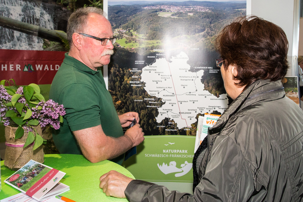 „Es ist der Wahnsinn“, meinte euphorisch auch Dr. Manfred Krautter vom Naturpark Schwäbisch-Fränkischer Wald, an dessen Stand auch die scheidende Waldfee Sonja Bischoff die Besucher bezauberte. „Es gibt ein sehr großes Interesse, und die Leute kommen schon informiert hierher und stellen gezielte Fragen.“ Und so schwärmte Krautter dann derart begeistert von der 24-Stunden-Wandertour „Schlaflos im Schwäbischen Wald“, dass man Lust bekam, sich einmal selbst dieser etwas anderen Wander-Erfahrung zu unterziehen.