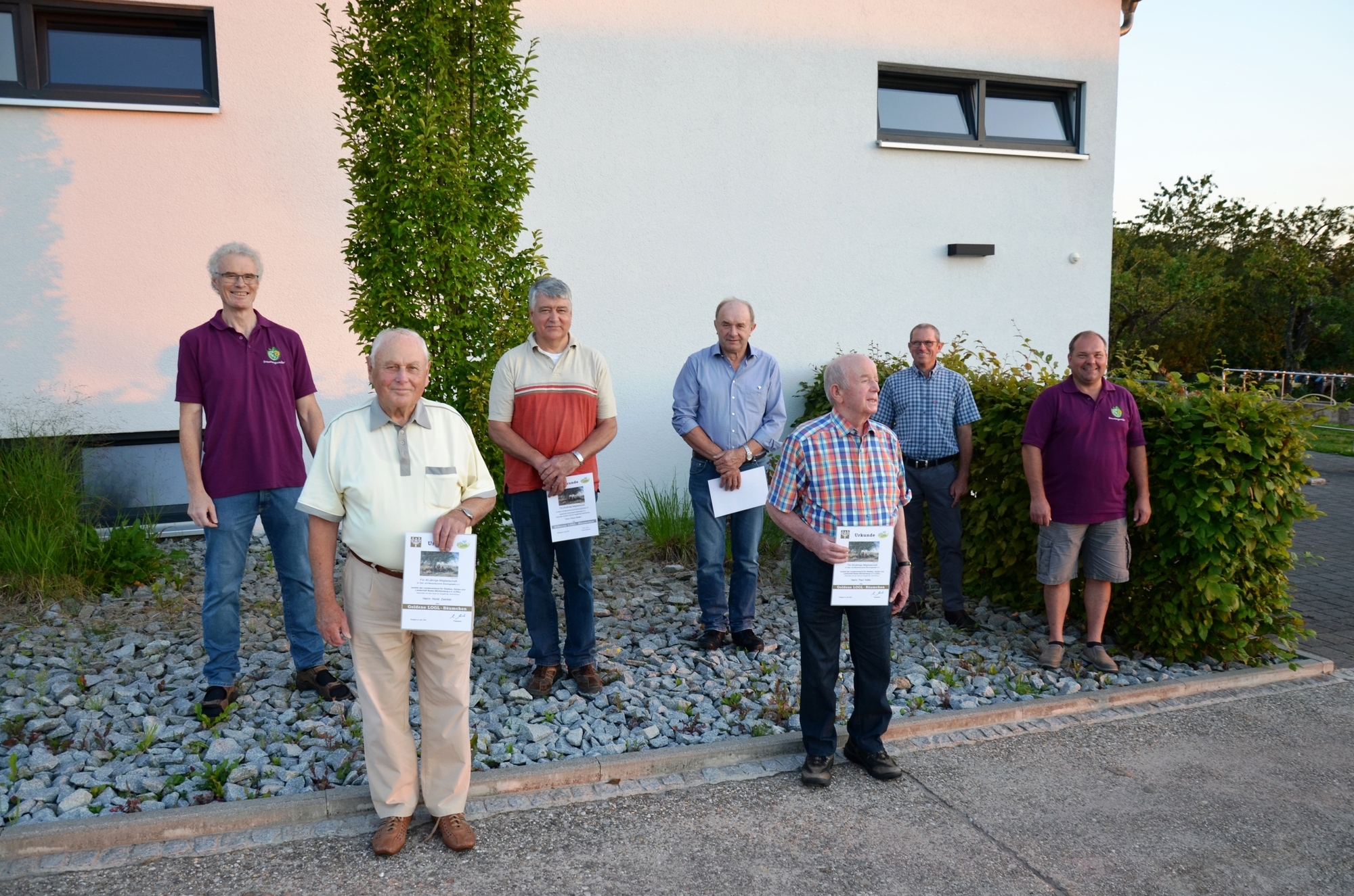 Bei der Mitgliederversammlung des Obst- und Beerenbauvereins Breuningsweiler hat der 1. Vorsitzende vom Kreisverband der Gartenbauvereine Waiblingen Horst Zwicker und Paul Käfer für 40 Jahre und Klaus Walter und Heinz Fritz für 25 Jahre Mitgliedschaft geehrt. Alle bekamen eine Urkunde und eine Ehrennadel des Verbands und einen Geschenkkorb.