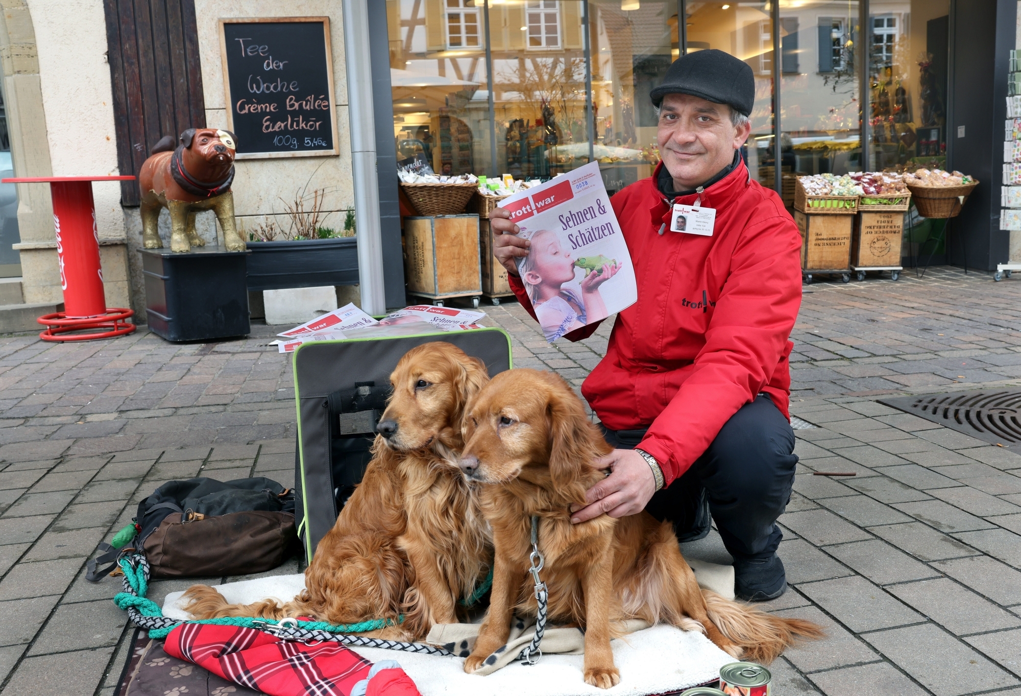 Seine Markenzeichen sind die schwarze Mütze, die gepflegten hellbraunen Hunde und der immer gleiche Wunsch an seine „Trottwar“-Kunden und Mitmenschen, die ihm einfach so einen Schein in die Hand drücken: Martin Kikiny dankt ihnen mit dem Satz „Ich wünsche viel Gesundheit und alles Gute im Leben.“ Wer wollte das nicht annehmen? Kikiny zaubert seinem Gegenüber damit stets ein Lächeln ins Gesicht.