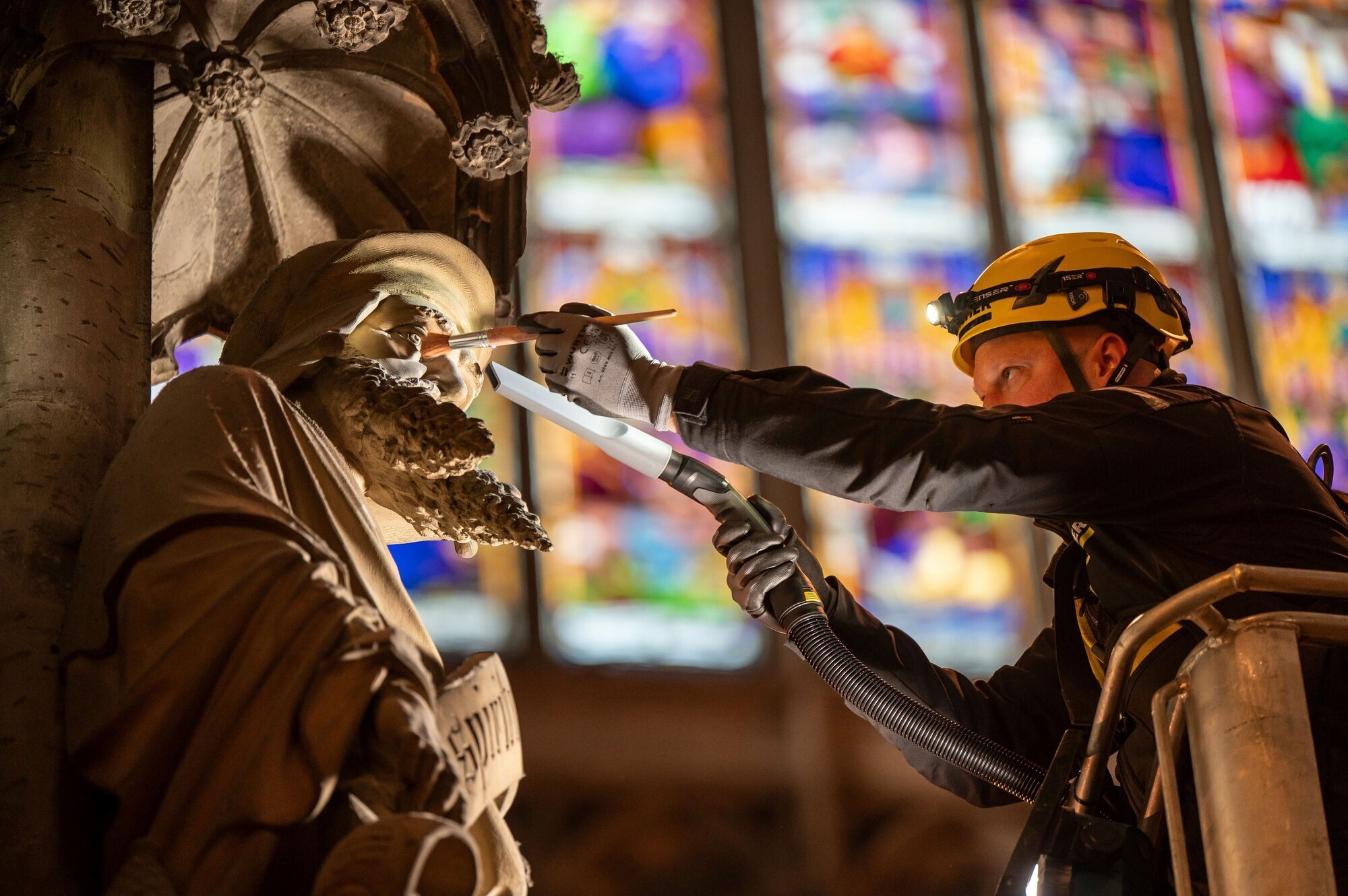 Für die Bewältigung der Reinigungsaufgaben stellt Kärcher kostenlos Nass-/Trockensauger mit verschiedenen Düsenaufsätzen zur Verfügung. Um die enorme Höhe der Gewölbe