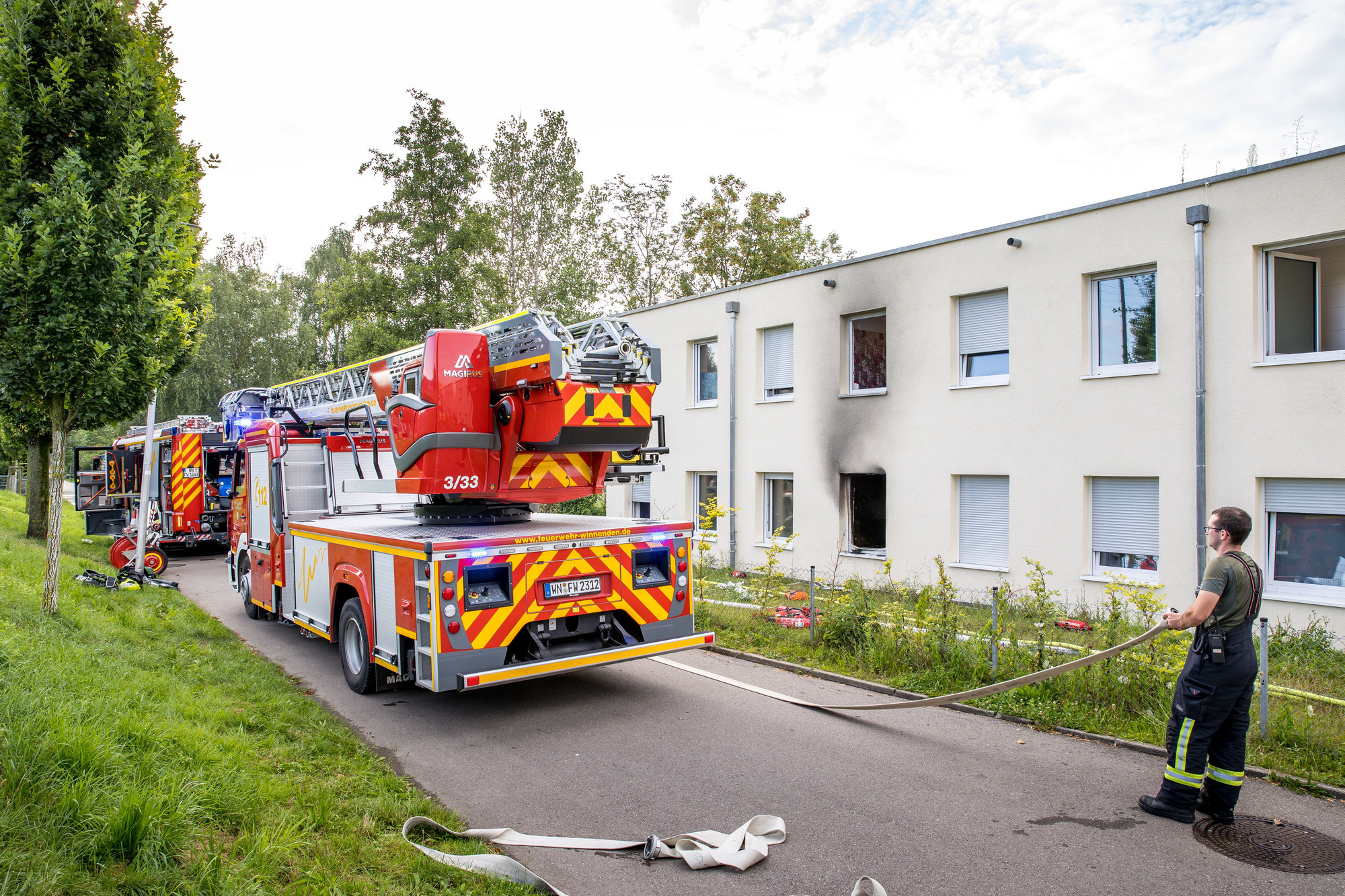 Der Schaden war immens, den ein Feuer am 20. Juli 2024 angerichtet hat: Mindestens 100 000 Euro kostete die Sanierung eines Zimmers der Gemeinschaftsunterkunft. Ein Teil des Gebäudes an der Albertviller Straße 22/1 in Winnenden war nach dem Löschen noch so verraucht, dass zwei Familien (insgesamt neun Personen) sowie drei Einzelpersonen vorübergehend woanders wohnen mussten. Der Bewohner des Brandzimmers im Erdgeschoss kam in Untersuchungshaft und wegen fahrlässiger Brandstiftung vor