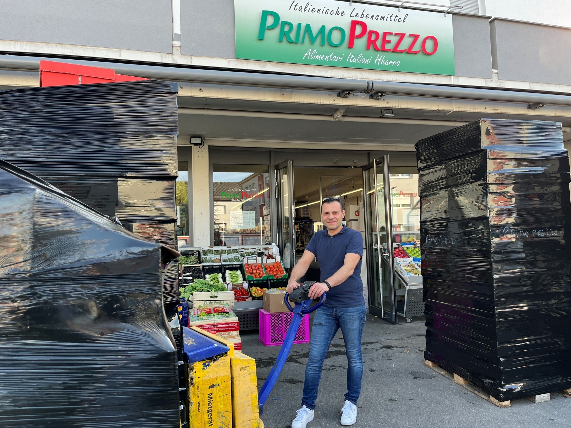 Seit Oktober 2019 führt Silvestro Hharra den italienischen Supermarkt am Steinweg. „Momentan ist es sicher die schwierigste Phase, seit ich hier vor drei Jahren angefangen habe“, erzählt er vor seinem Geschäft, während er frisch eingetroffene Waren, die in schwarzer Folie eingewickelt auf Platten stehen, über den Parkplatz manövriert. Frachtkosten sind immens gestiegen, Produkte im Einkauf um ein Vielfaches teurer, und auch der Strompreis macht dem Geschäftsmann Sorgen.