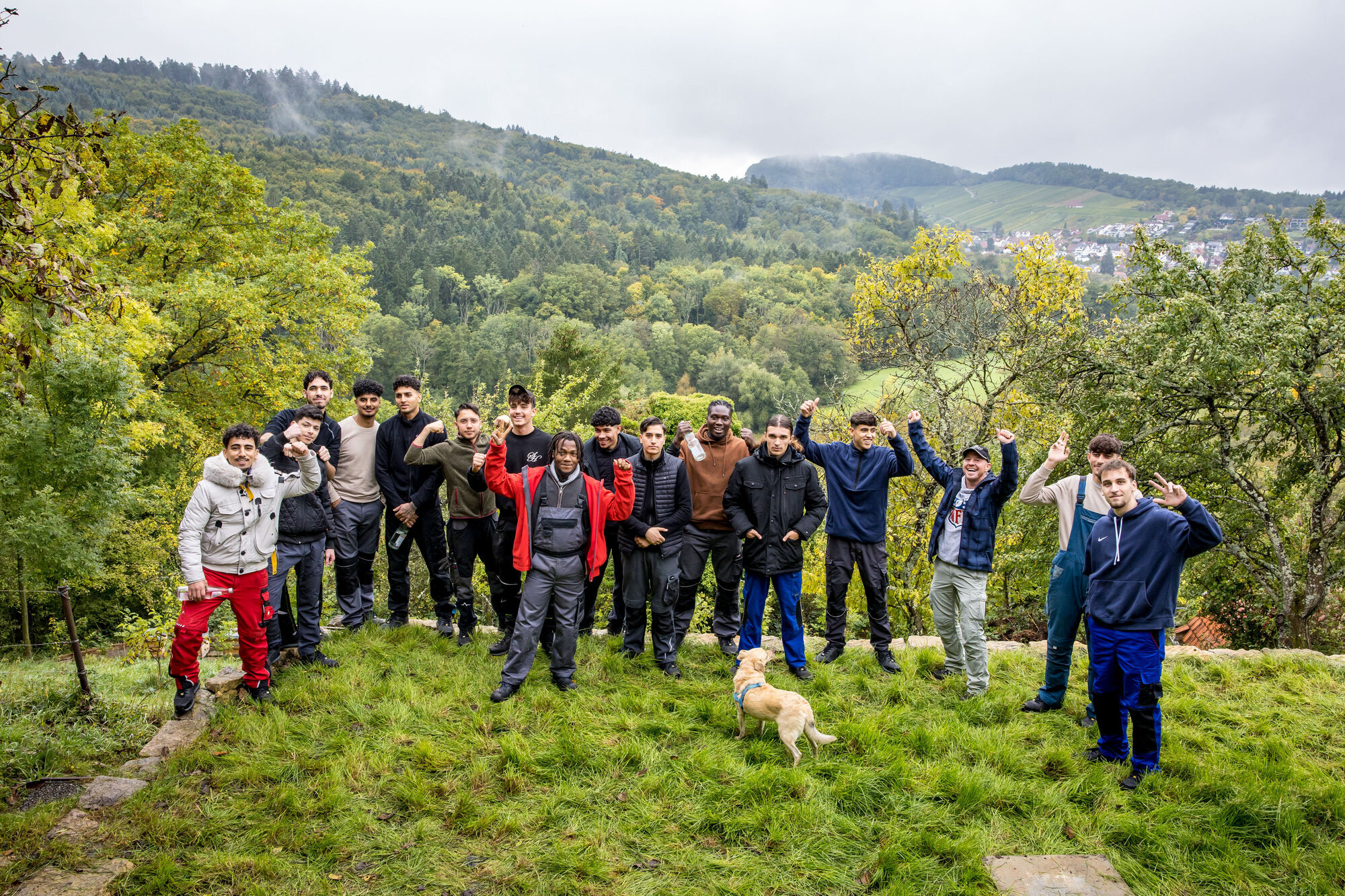 Winnenden. Das schmale Grundstück am Breuningsweiler Sonnenberg ist verdammt steil. Und nach den feuchten Tagen Anfang Oktober sind die unterschiedlich großen Steinstufen ziemlich rutschig. Nur mit den Tritten gelangen die Besucher überhaupt vom Gartentor hinunter zu den verschiedenen Ebenen. 16 Schüler der Carl-Schaefer-Schule in Ludwigsburg sind zu Gast bei Landschaftsgärtner Martin Schulz und Sozialpädagoge Charly Hayta. Die beiden betreuen im Auftrag der Caritas das