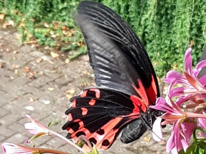 Damit hat sie nach Einschätzung aller von uns angefragten Naturfreunde den Schmetterling richtig bestimmt. Es kann nur dieser Scharlachrote Schwalbenschwanz aus Asien sein.