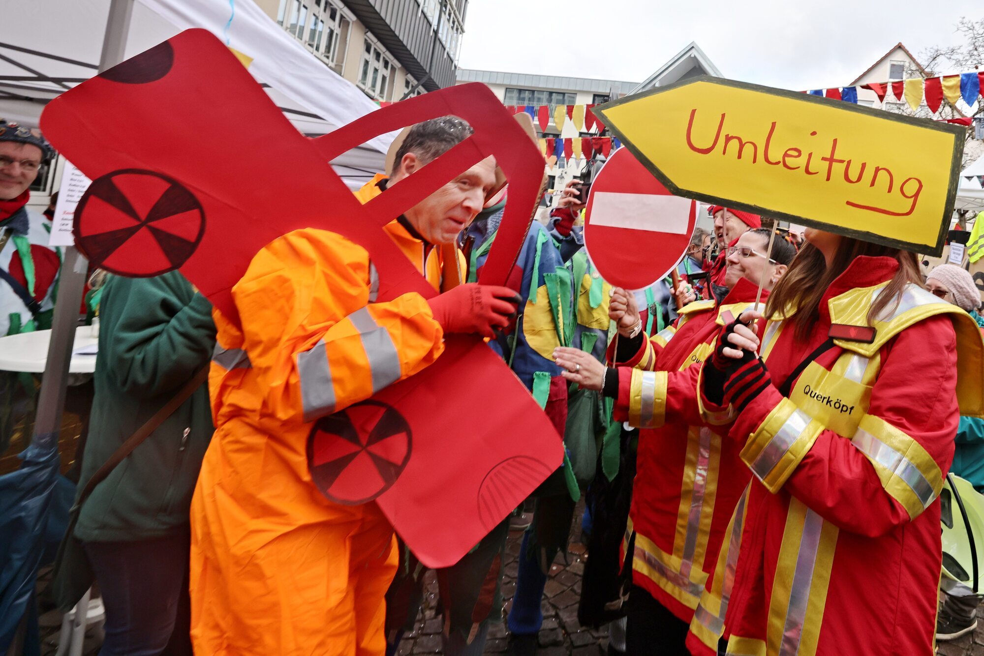 Der Sturm aufs Rathaus Winnenden ist dieses Jahr sehr, sehr clever gemacht. Für die Kindergartenkinder im Publikum ist's eine Riesengaudi, zwei Männer unter Frauenperücken mit so viel Konfetti zu bewerfen wie möglich. Und stellvertretend für die Winnender und Auswärtigen, die in Winnenden gerne einkaufen wollen, sind die Spiele der Guggenmusiker Querköpf eine Art kleine Racheaktion mit einer winzigen Prise Schadenfreude.