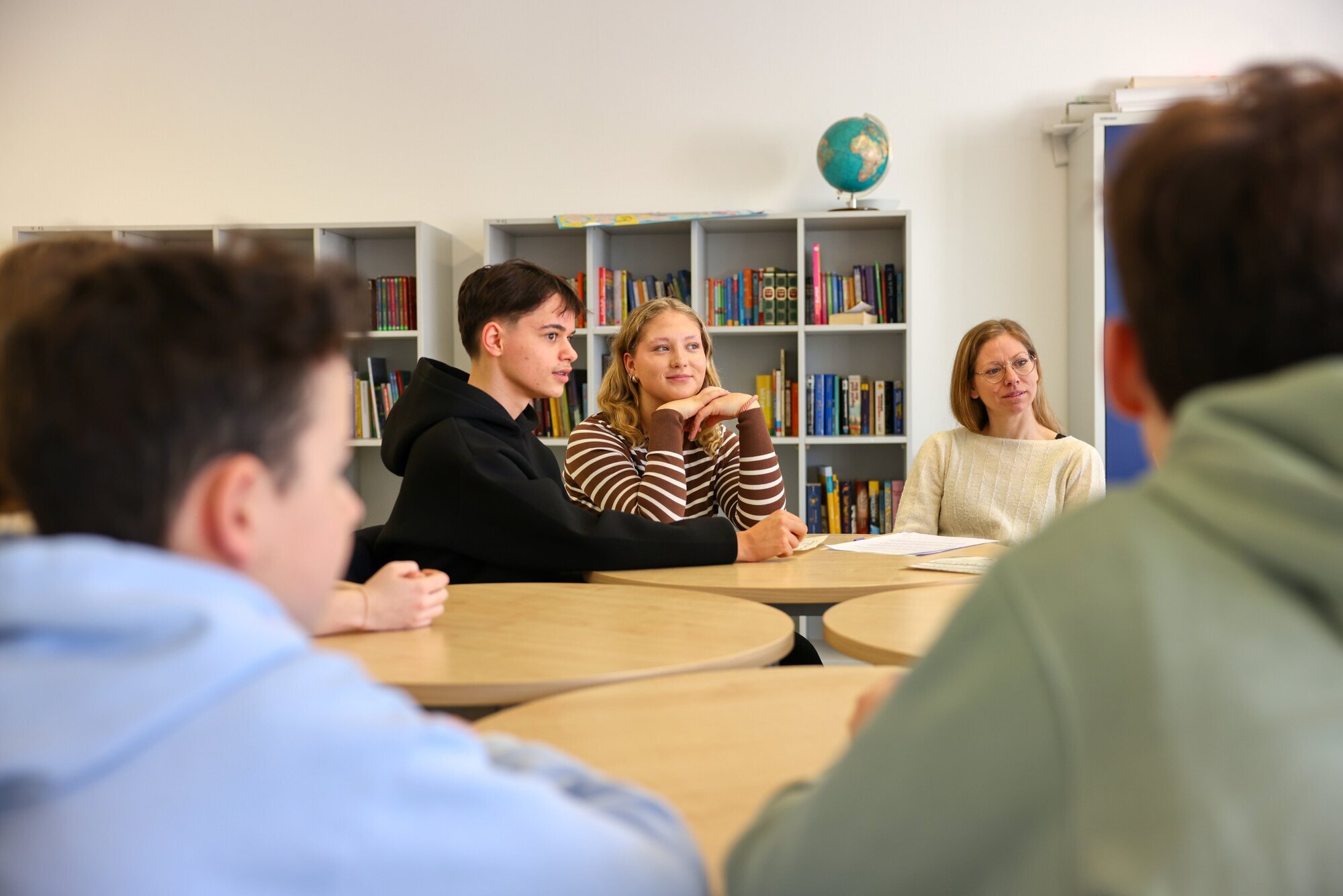 Die sechs jungen Menschen, die beim Pressegespräch in der Geschwister-Scholl-Realschule (GSR)
