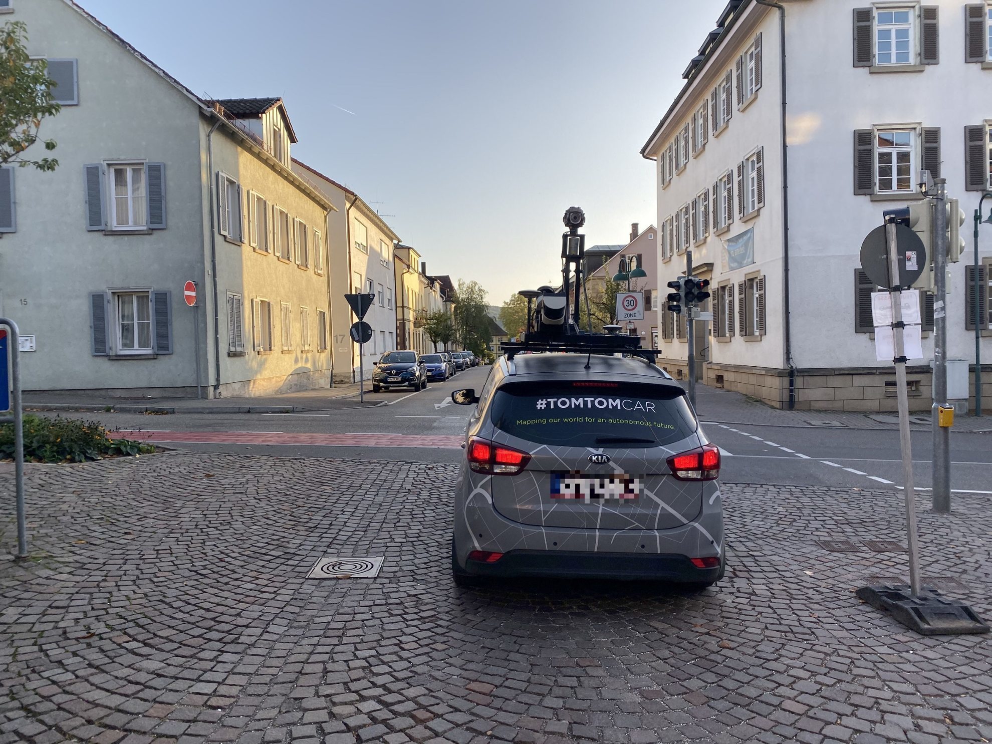 Am Sonntagabend ist ein Auto mit polnischem Kennzeichen und Kamerakonstruktion auf dem Dach durch die Straßen von Winnenden gefahren. Dahinter steckt das Navigationsunternehmen Tomtom Telematics, das inzwischen Webfleet Solutions heißt. "Das Tomtom-Kartenzentrum ist in Polen stationiert. Von dort werden die Aufträge koordiniert", erklärt ein Sprecher der zuständigen PR-Agentur. Um das Kartenmaterial in Winnenden auf den neuesten Stand zu bringen, sei das Auto mit einer 360-Grad-Kamera, die aus sechs einzelnen Kameras besteht, unterwegs. „Es wurde wohl ein Konflikt zwischen dem bestehenden Kartenmaterial und den tatsächlichen Bewegungen der Autos in Winnenden festgestellt“, so der Sprecher weiter.