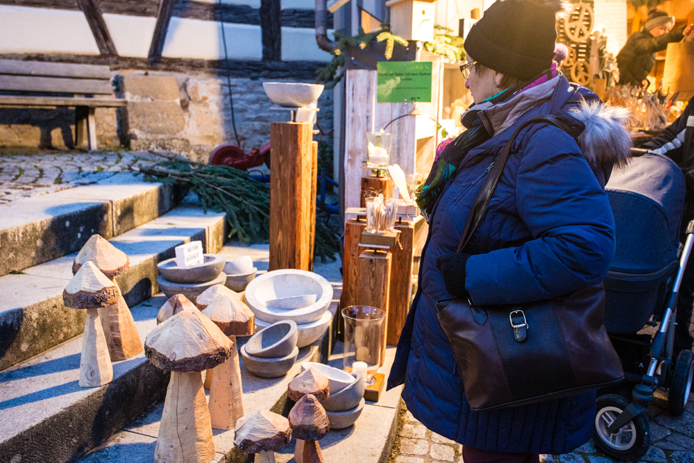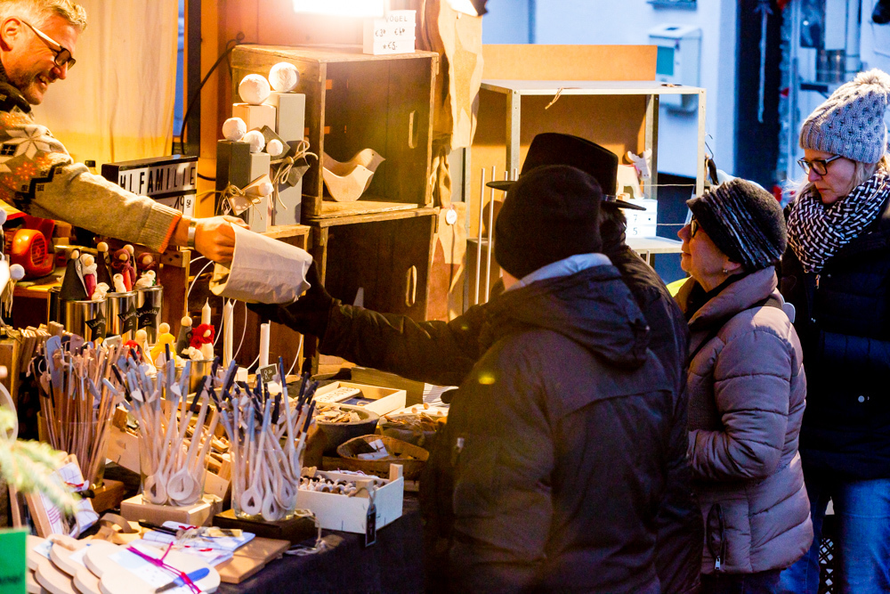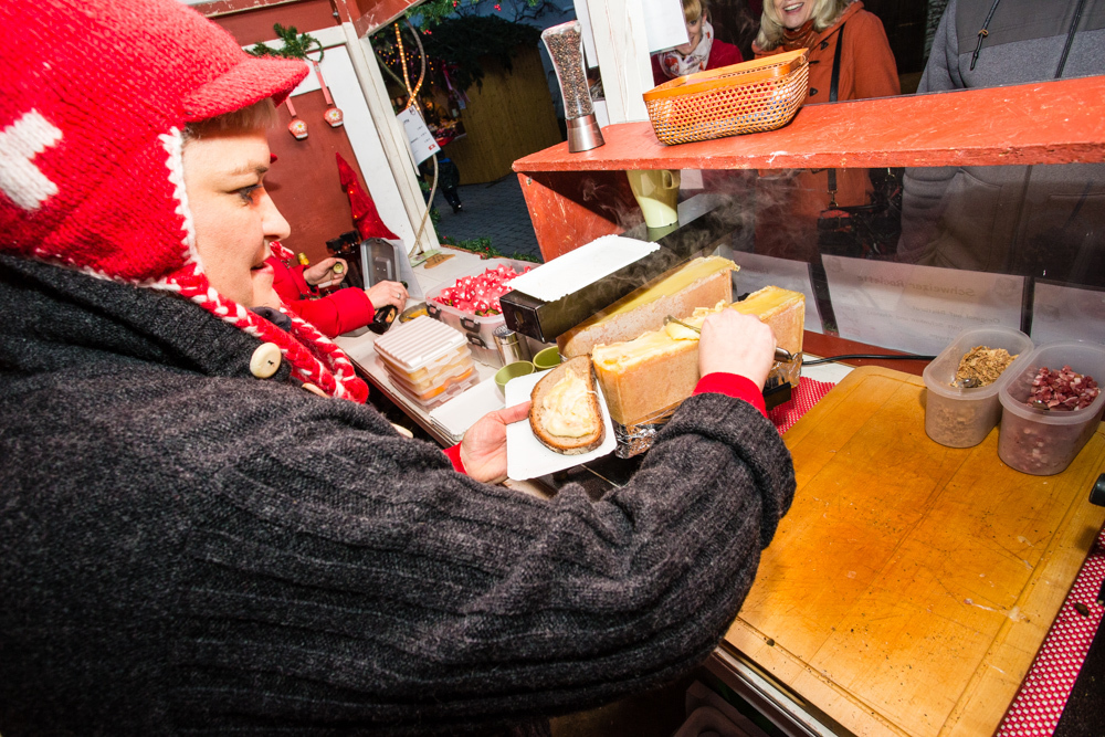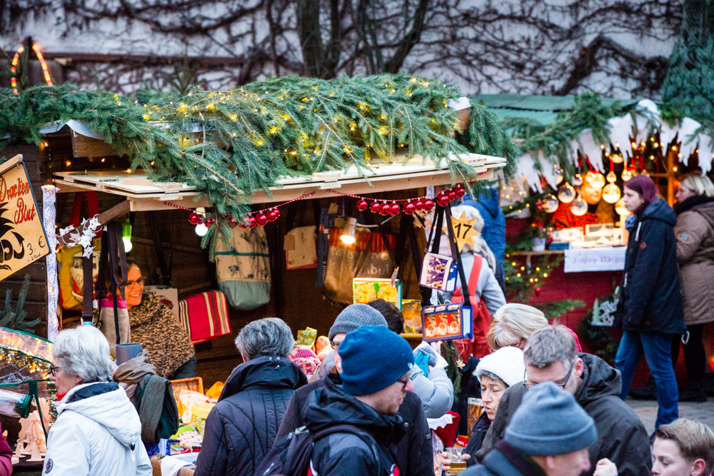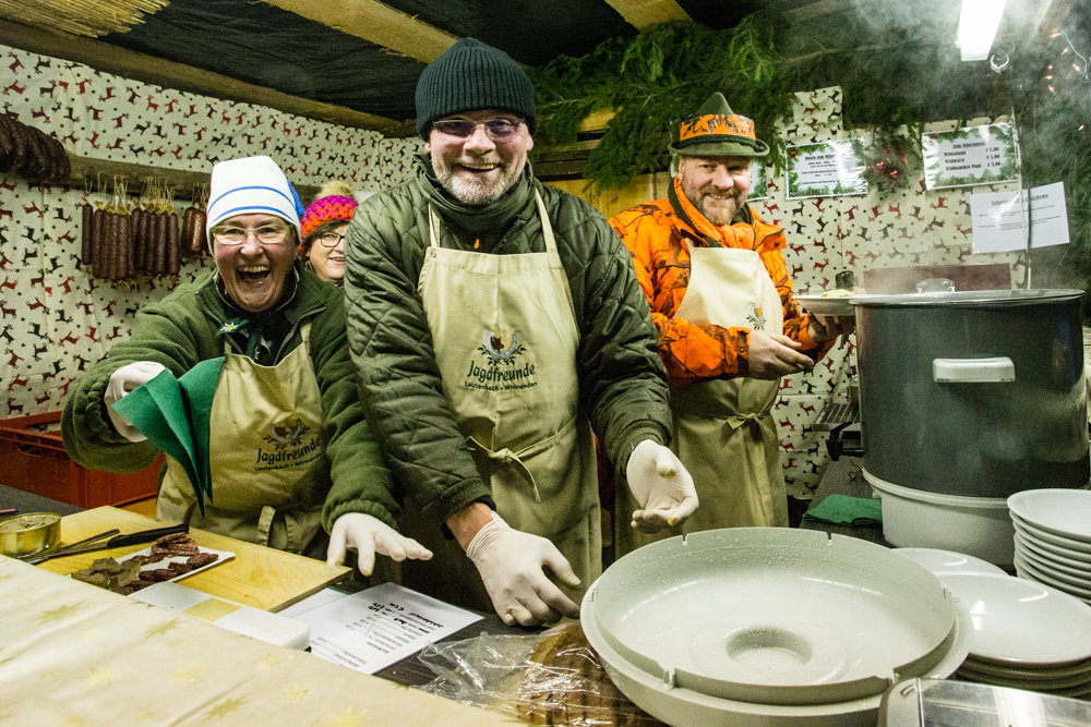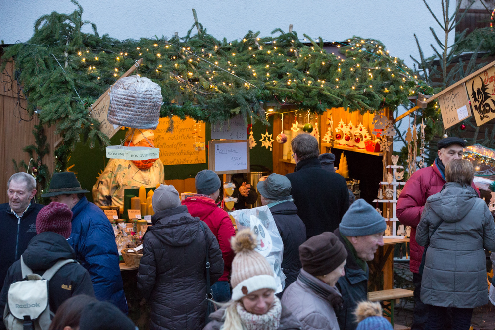 Auf eine weitere Weihnachtsmarkts-Besonderheit macht Alexander Harsch an seinem „Gastro Service“-Stand aufmerksam: Alles gebe es nur einmal, hier etwa Glühwein dieser, dort jener anderen Sorte. Keine Doubletten im Angebot, ein Grund für ihn, der weit rumkommt, „dass dieser Markt einer der schönsten in der Region ist“.