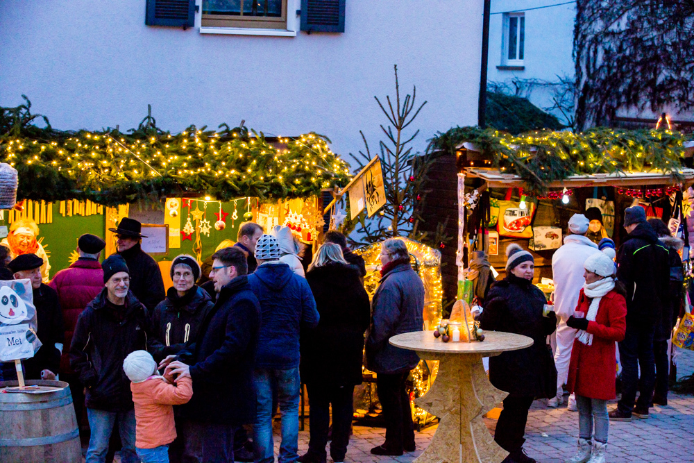 Dass dieser Weihnachtsmarkt beispielsweise von den Geesmusikern Nellmersbach organisiert und ausgeführt wird, ist schon mal das erste Kuriosum. Karnevalskönner unterm Tannenbaum gibt es nicht überall. Diese Guggen haben sogar eine Weihnachtsgees zusammengestellt, eine 20-köpfige Truppe mit Trompeten, Posaune, Saxofonen, Pauke, Schlagzeug und „Schedderle“, die zum Auftakt des Marktes wie zum Finale - und auch zwischendrin - spielte, laut Trompeterin Susanne Körner Weihnachtslieder „leicht verguggt“. Also etwa „O Tannenbaum“ im Kläpperles-Korsett. Ihre Guggen-Kollegin Silvia Michaleff, die mit vier Gemeinderäten die Standprämierung besorgt, widerspricht: Der Guggen-Anteil sei gering, die Melodien blieben vollständig erhalten, die Weihnachtslieder erklängen eher getragen und einfach „schön“, auch wenn’s gelegentlich klappert. Jedenfalls originell, das Ganze.