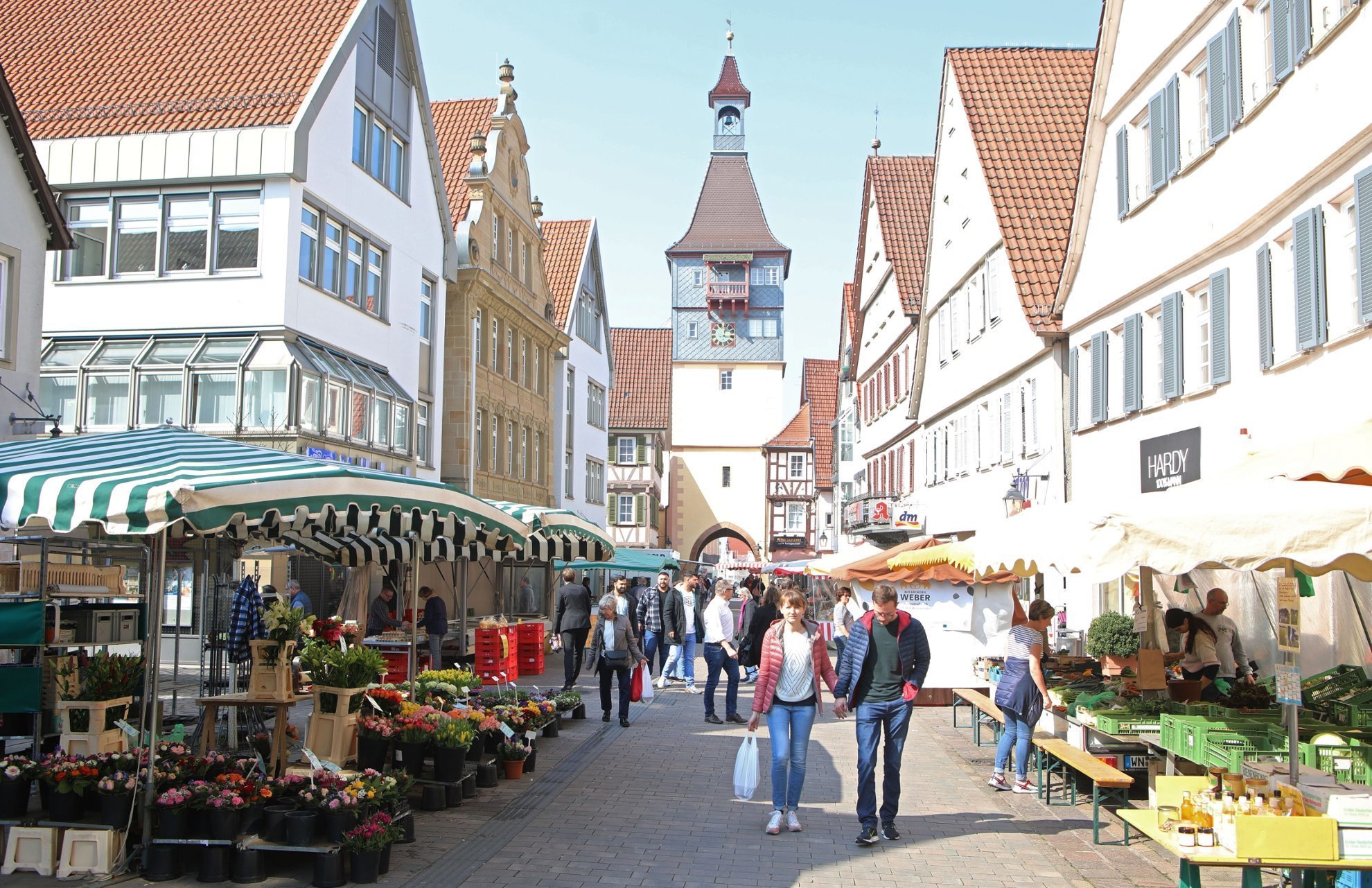 Die Stadt ist belebt, aber es ist weniger los als sonst. Am Donnerstag, dem zweiten Tag, an dem viele Geschäfte per Verordnung durch die Landesregierung schließen mussten, lockte immerhin noch der Wochenmarkt mit seinen frischen Lebensmitteln die Menschen an. Auch das herrliche Wetter spielte eine Rolle, ließ die Menschen in Straßencafés Platz nehmen. Bei den meisten saßen die Gäste im vorgeschriebenen Abstand von 1,5 Metern, bisweilen
