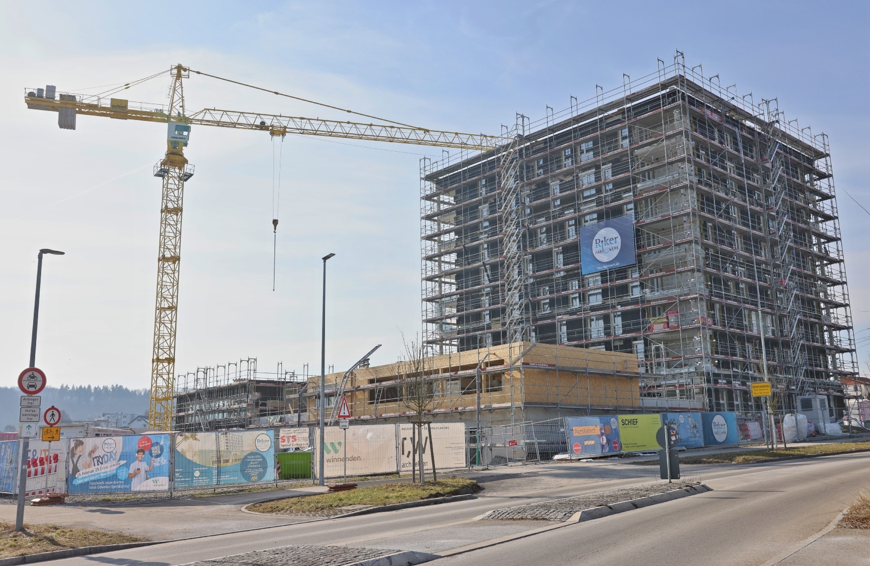 Die Fertigstellung des achtgeschossigen Gebäudes am Krankenhauskreisverkehr am Rande des Schelmenholzes in Winnenden rückt näher – auch im Inneren. In wenigen Monaten sollen die Bewohner einziehen. Trifft das auch auf die Kindergartenkinder zu?