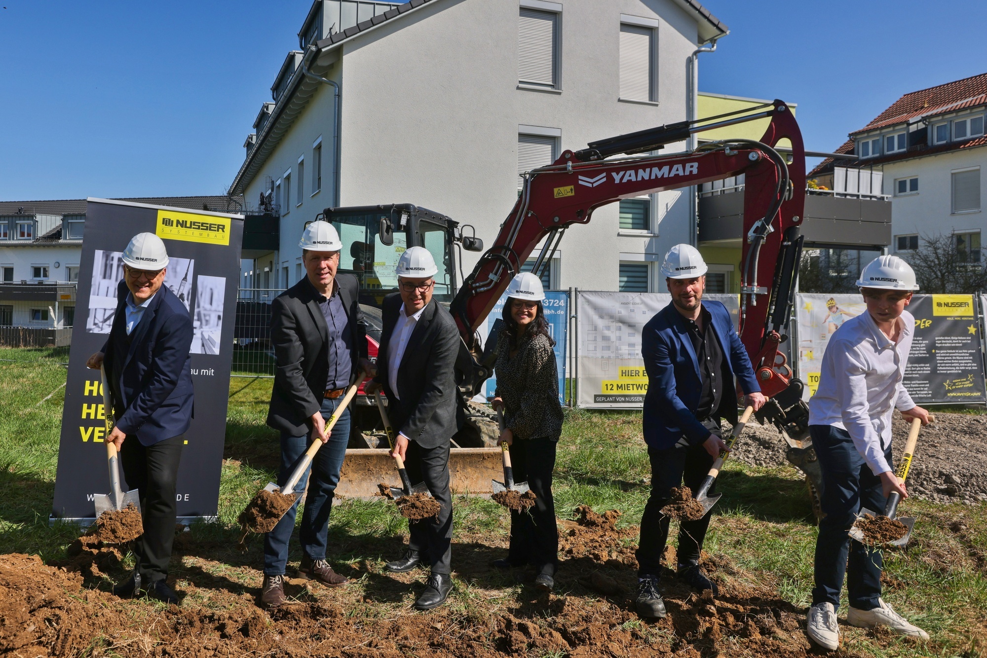 Winnenden. Das noch unbebaute Grundstück im Wohngebiet Lange Weiden hat sich Jörg W. Nusser für Zeiten wie diese aufgespart. „Die Bauwirtschaft tut sich schwer“, sagte der Geschäftsführer der Winnender Firma Nusser Systembau am Dienstagnachmittag beim Spatenstich für ein neues Mehrfamilienhaus in der Nähe des Rems-Murr-Klinikums. Immer wieder habe Markus Schlecht vom städtischen Stadtentwicklungsamt in den vergangenen Jahren nachgehakt, wann die Baulücke endlich geschlossen
