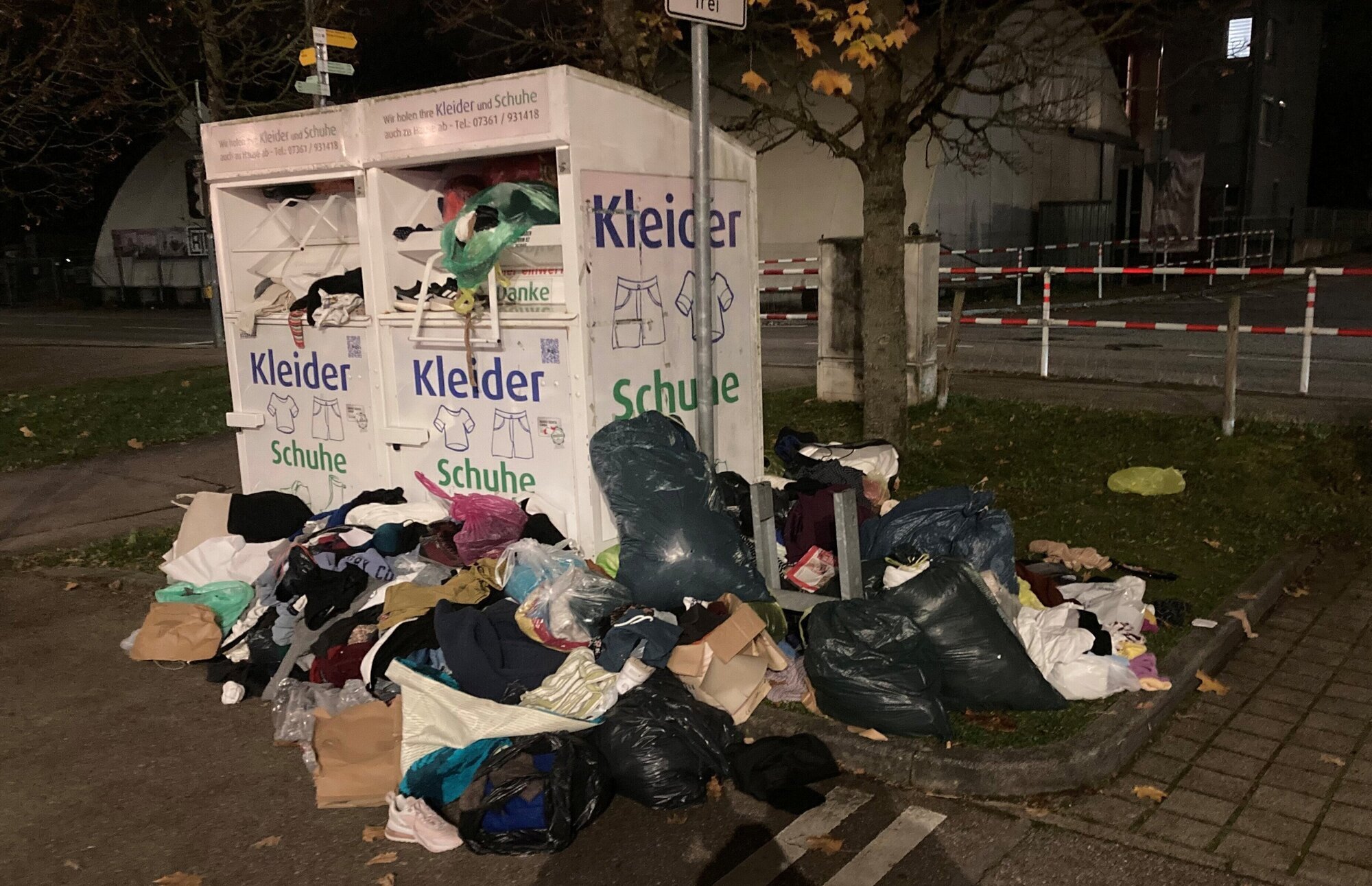Winnenden. Gebrauchte Kleidung zu spenden wird immer schwieriger. Neulich wollte ein Winnender abends mehrere Altkleidersäcke in die Sammelcontainer an der Wiesenstraße beim Edeka werfen. Doch es ging nicht: Sie quollen über - und rings umher lag ein großer Haufen offener und verpackter Klamotten in der Nässe. Der Mann fuhr mit seinen Säcken wieder heim. Inzwischen sind der Müll, aber auch beide Container verschwunden. Der Mann fragt nun unsere Redaktion: Wohin mit den