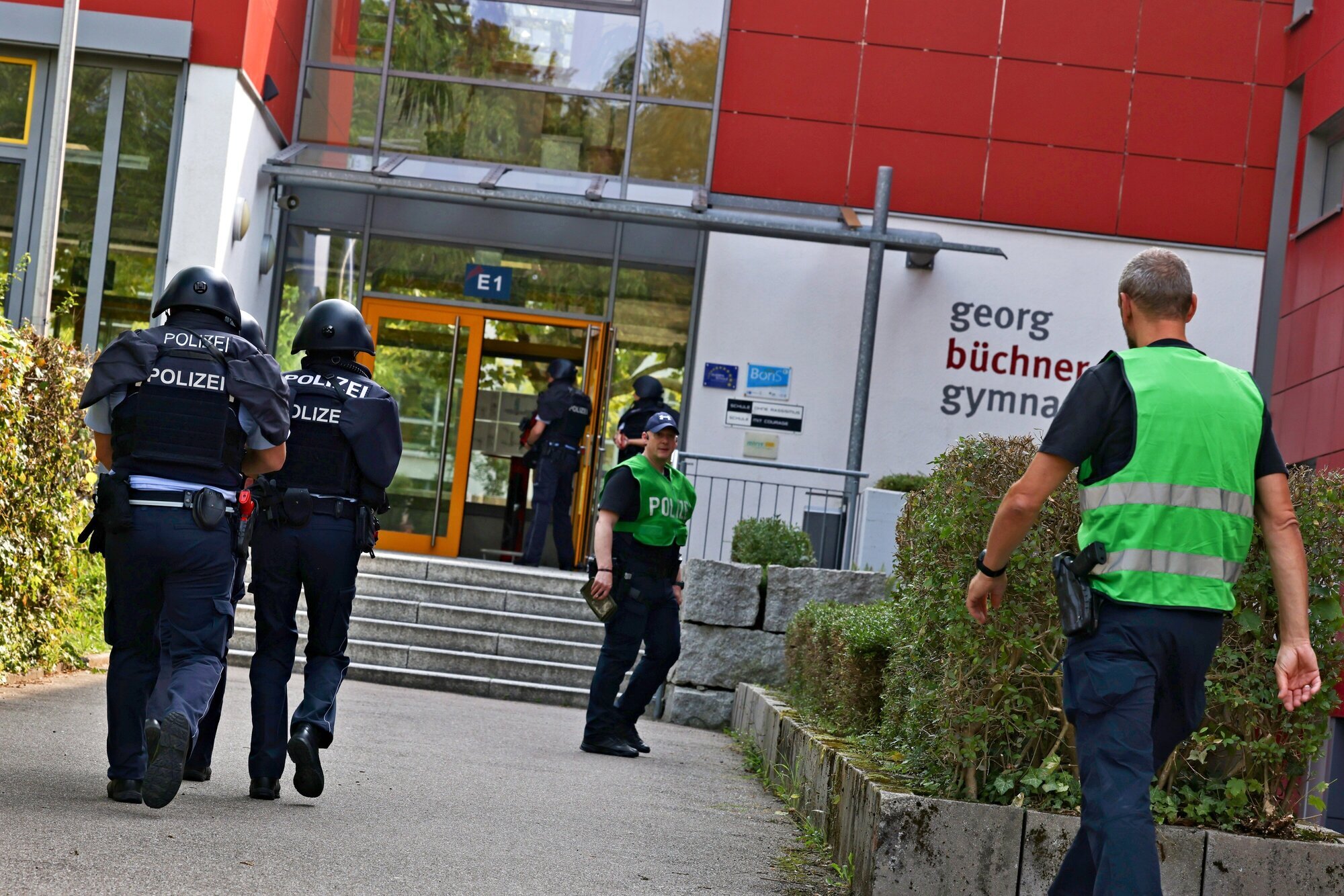 Winnenden. Auch wenn nicht alles glattgelaufen ist - am Ende der ersten Übung wirkt Polizeirevierleiter Michael Bauer zufrieden: „Ich bin positiv überrascht, muss ich ehrlich sagen. Die jungen Kolleginnen und Kollegen sind superprofessionell vorgegangen, es war von der Kommunikation und Koordination richtig gut.“ 30 Polizistinnen und Polizisten haben zuvor am und im Georg-Büchner-Gymnasium für den Ernstfall trainiert. Es galt, ein Amoklauf-Szenario zu bewältigen.