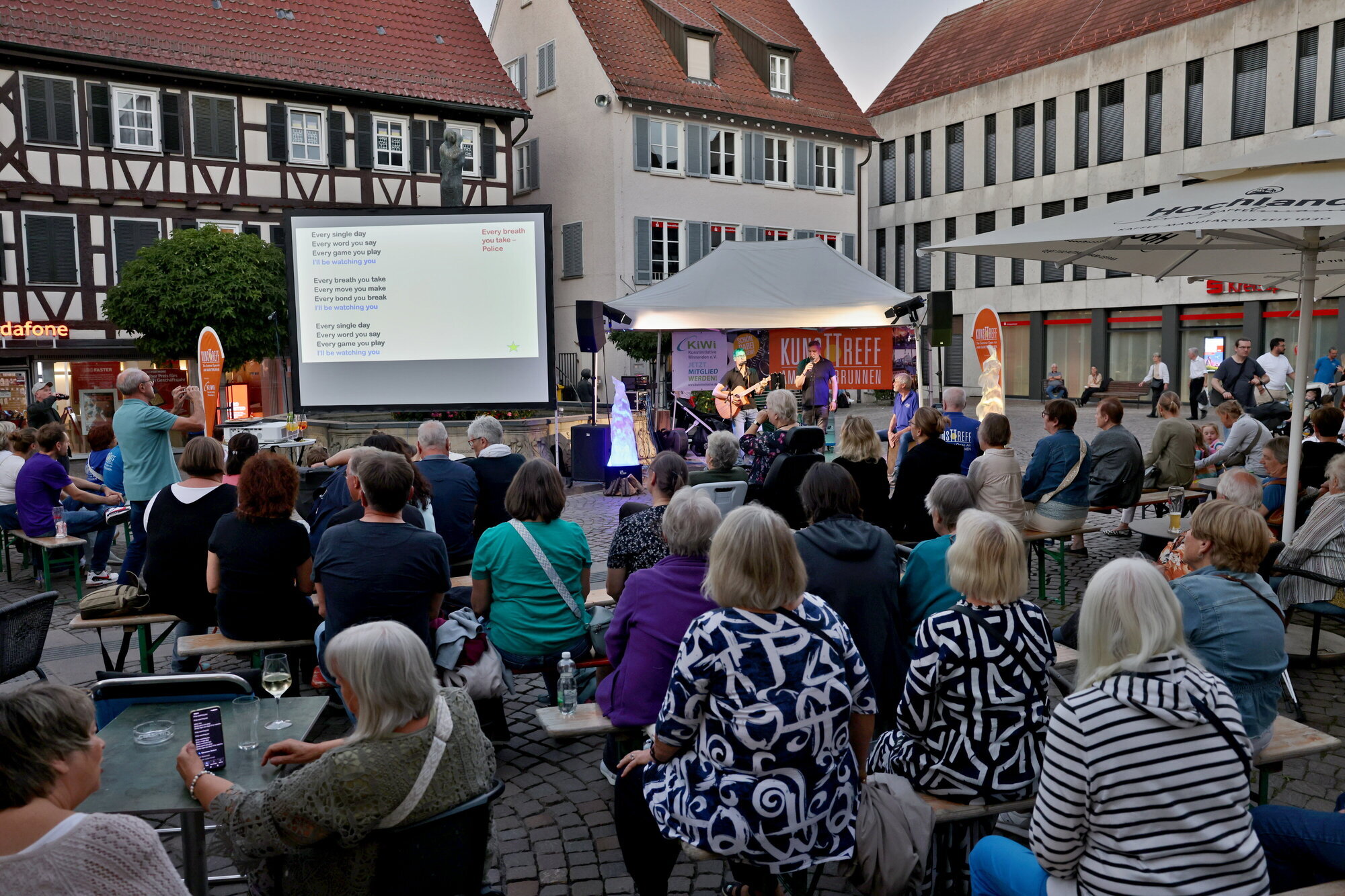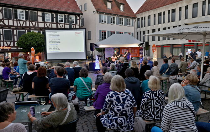 Winnenden. „The Sound of Silence“ und „House of the Rising Sun“ - die Kunsttreff-Saison 2025 ist am Freitag (19.9.) zu Ende gegangen. Mit Liedern die jeder kennt. Mit einem großen und im doppelten Sinne „offenen“ Singen, weil es unter freiem Himmel stattfand und für jedermann gedacht war. Statt wie gewohnt zwei Bands zu lauschen und zu applaudieren, versammelten sich die Gäste rund um ein LED-Lagerfeuer, das mit wedelnden Seidentüchern geruchsfrei und brandsicher für eine