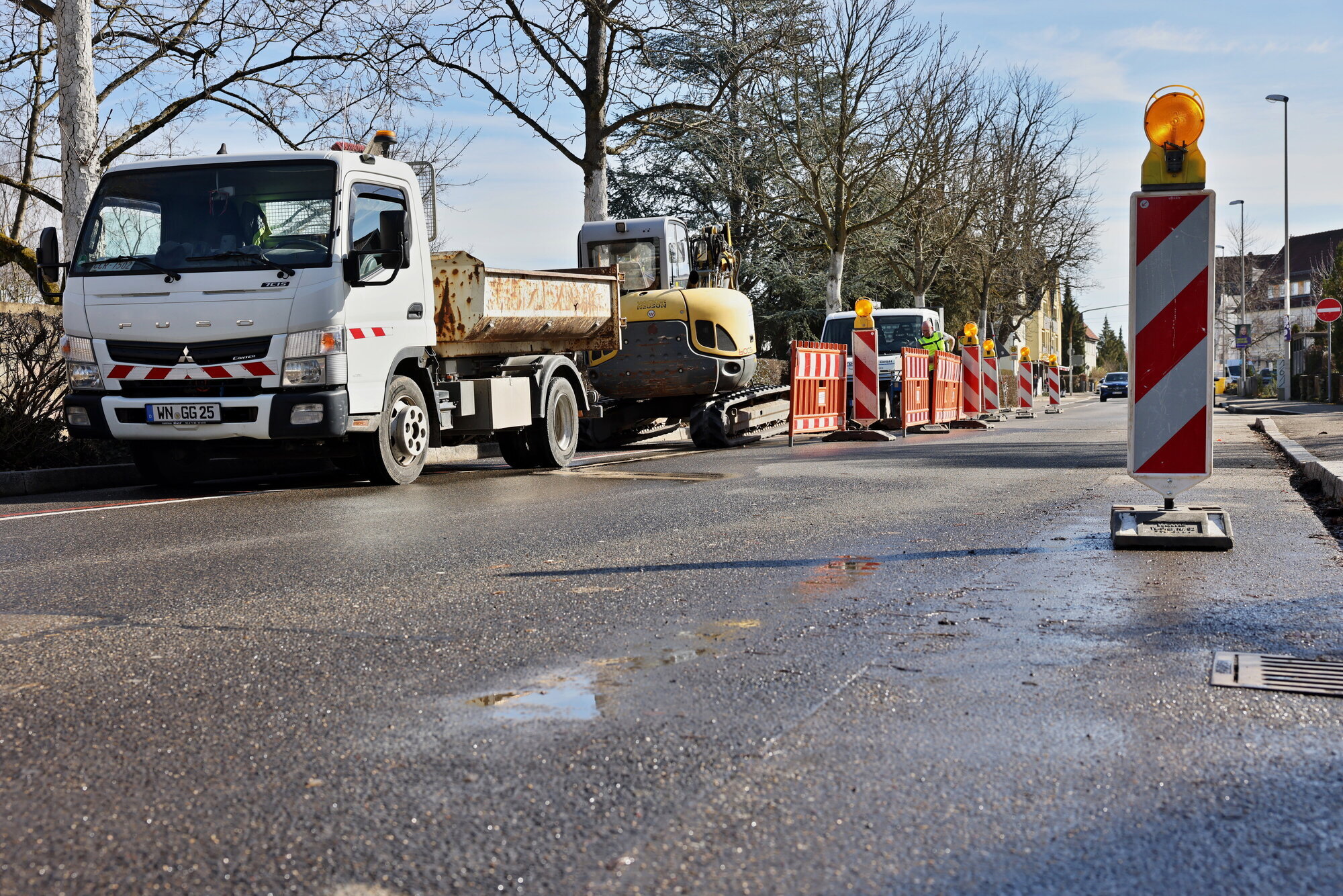Winnenden. Nach Tagen mit Regenwetter scheint die Sonne über dem Stadtfriedhof - und trotzdem klingt der Straßenverkehr am Donnerstagmorgen (26.2.), als würden Autos und Busse durch eine Bachfurt rauschen. Was ist da los an der Schorndorfer Straße? Und was hat das gute Wetter damit zu tun?