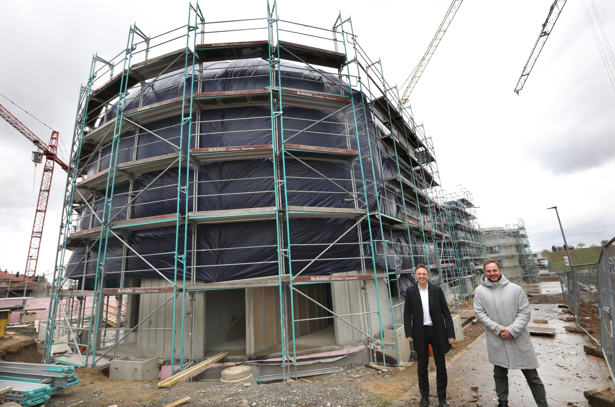 Weshalb hüllt die Immobilienfirma Strenger ihre Neubauten im Adelsbach in dunkle Folien? Handelt es sich dabei etwa um eine Kunstaktion? Oder will das Unternehmen vielleicht sogar etwas vor den Augen der Winnender verstecken? „Wir haben nichts zu vertuschen“, erklärt Harald Wegmann, Technischer Leiter des Unternehmens mit einem Lachen. Der Grund für die dunklen Folienbahnen sei ein ganz anderer. „Coronabedingt ist es zu Verzögerungen bei der Anlieferung der Fenster gekommen“, schildert