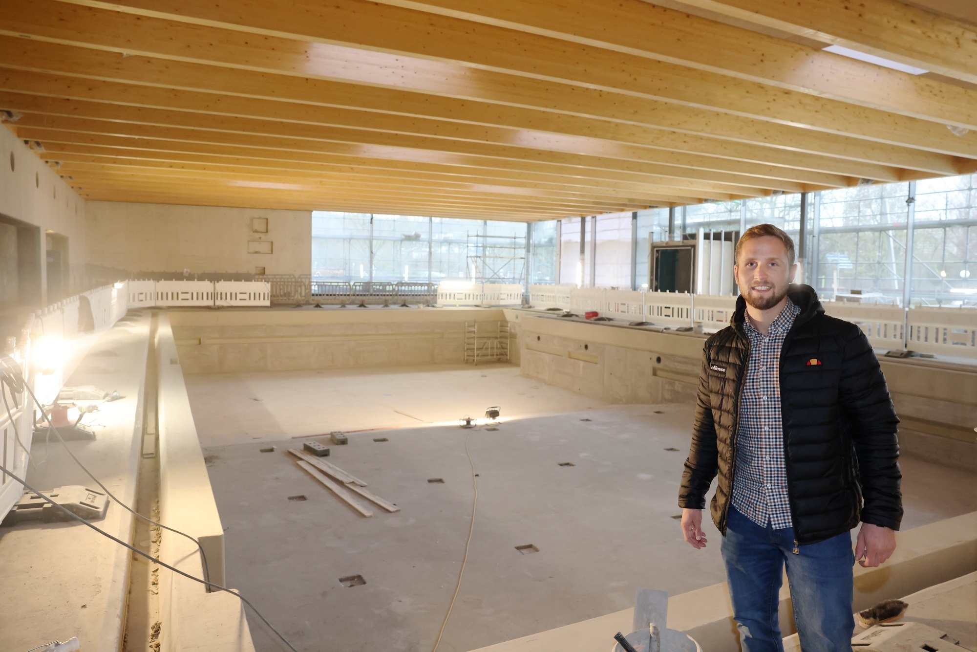 Stadtwerke-Chef Jochen Mulfinger erzählt, dass inzwischen über 90 Prozent der „Kostenmasse“ vergeben sind. „Es fehlen noch Themen wie die Sauna, Schreinerarbeiten, die Erweiterung unserer Kassensysteme und kleinere Sachen wie die Baureinigung.“ Langsam aber sicher also scheint die