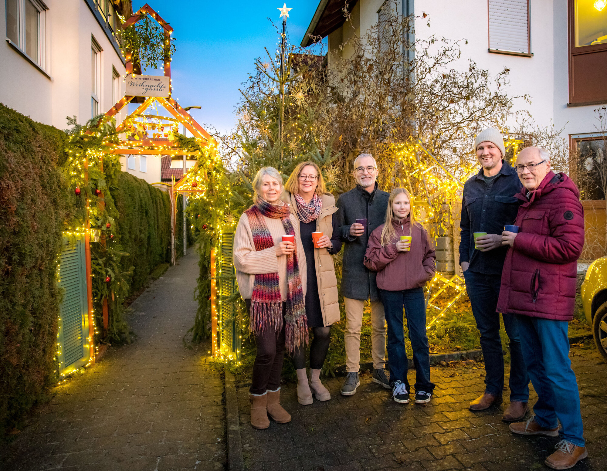 Winterbach. Erst mal sieht man gar nichts. Nur eine normale, dezembergraue Straße in einem Wohngebiet in Winterbach. Aber da! Um die Ecke wird es warm: ein mit Strohsternen behangener Weihnachtsbaum, ein beleuchteter Torbogen - der Eingang zum Weihnachtsgässle. Dort taucht man ein in ein Wunderland der Weihnachtsgefühle, ganz ohne Blink und Bling-Bling, dafür mit vielen kunstvollen Details: Wer genau hinschaut, kann sich hier viele Ideen für eigene Weihnachtsdeko-Basteleien