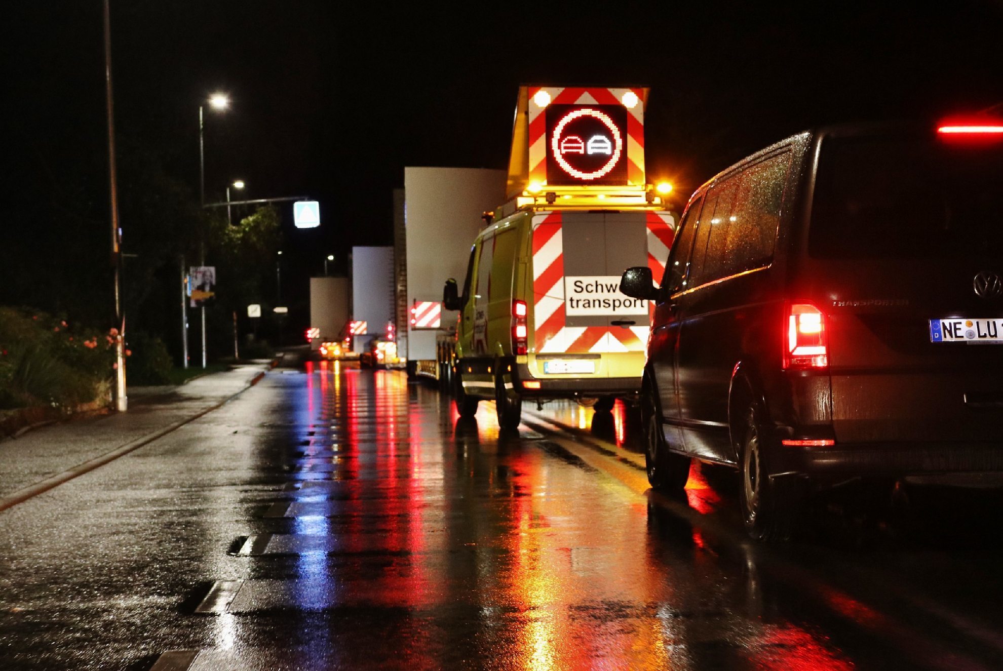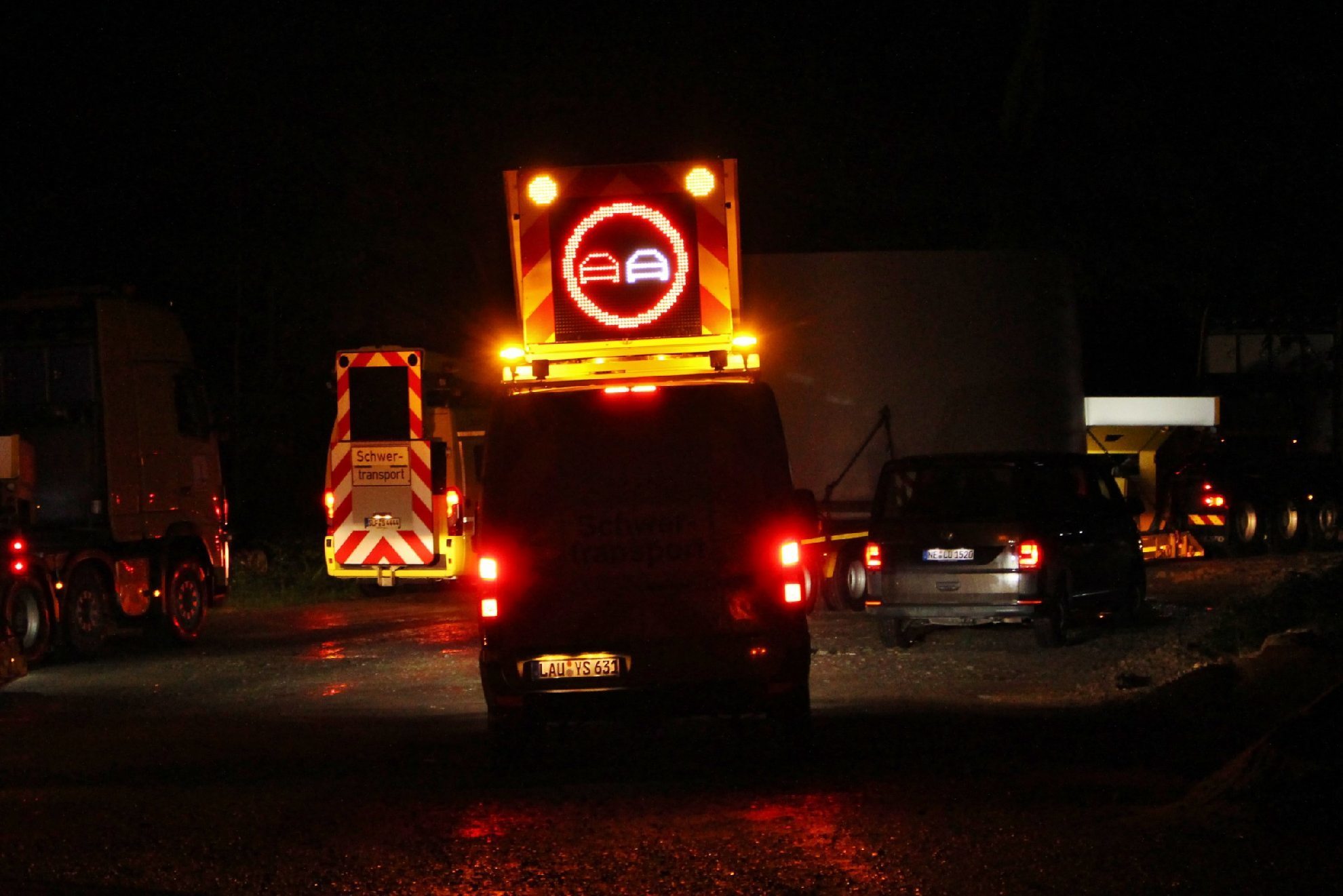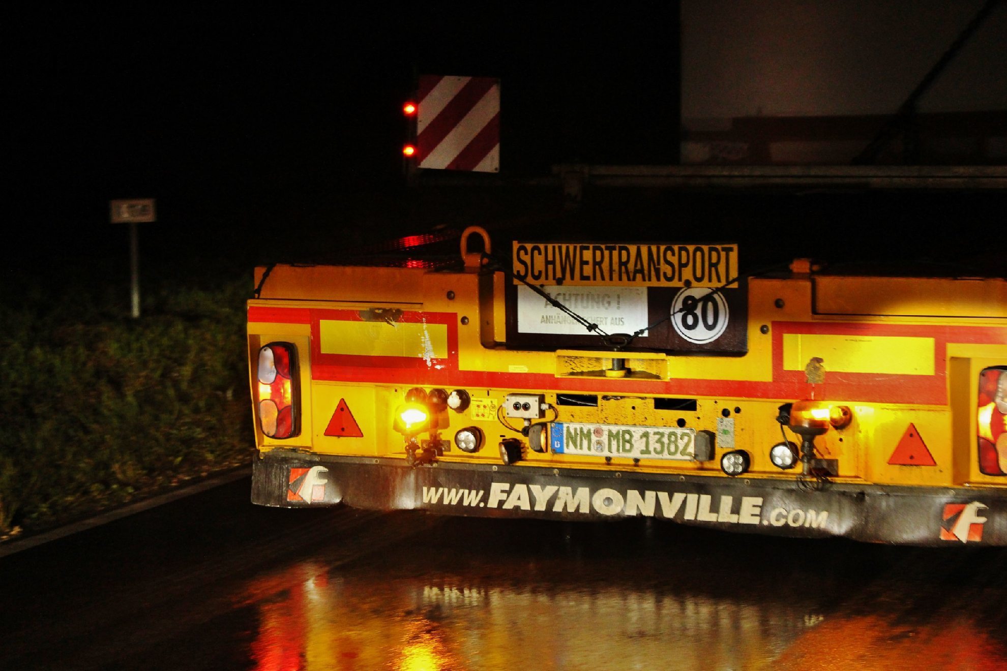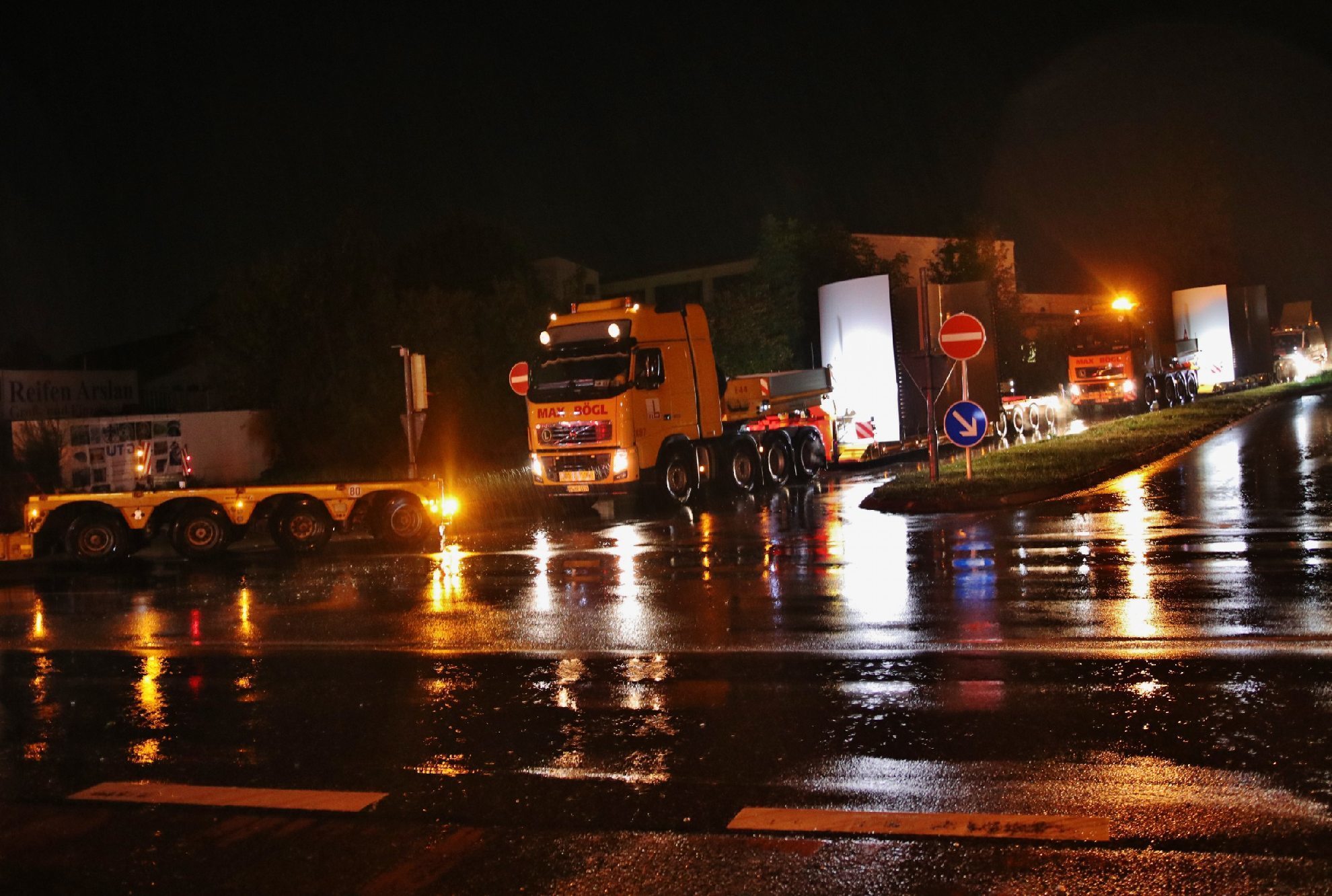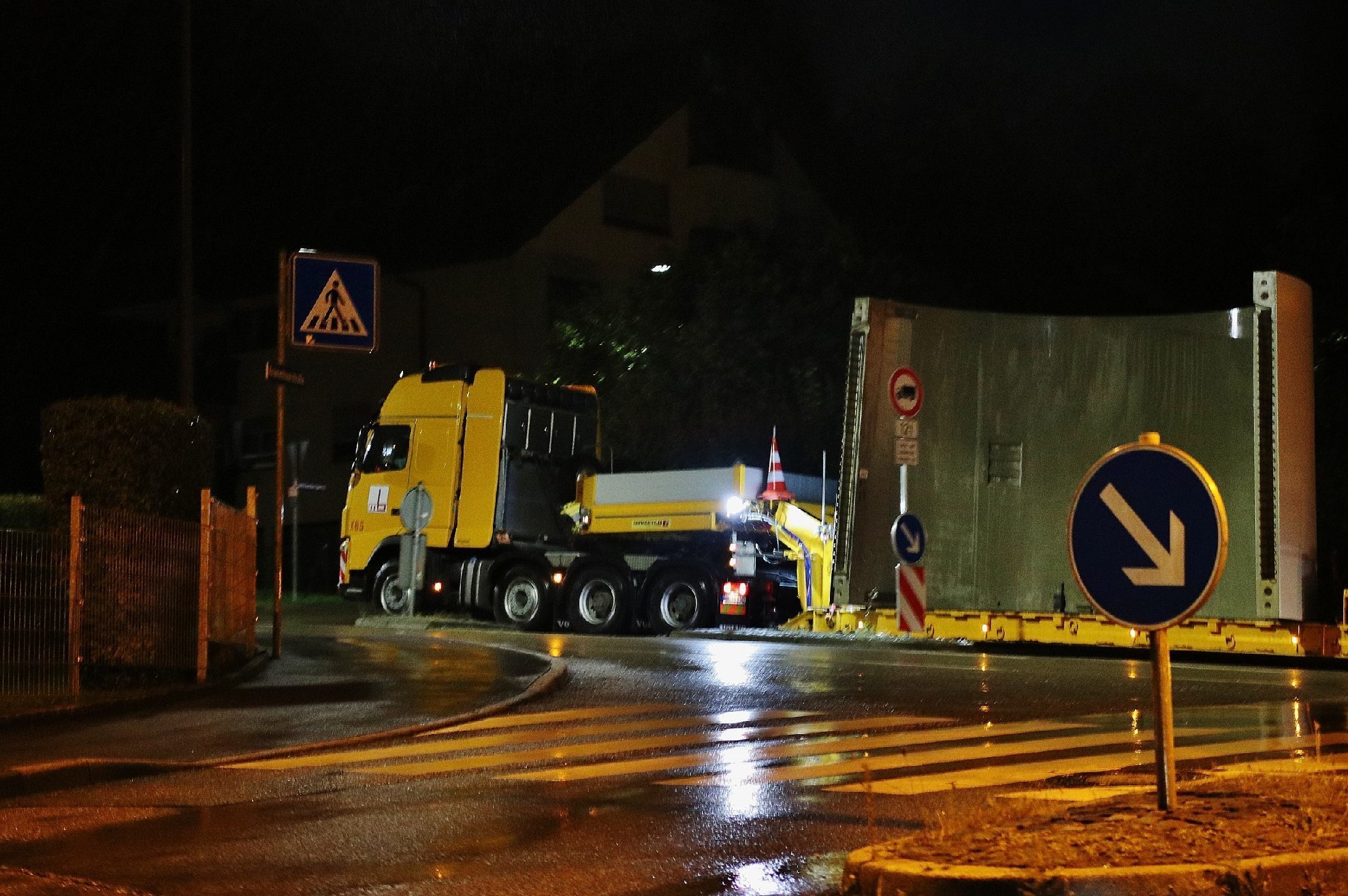 Über die Kaiserstraße in Richtung Manolzweiler erreichten die Transporte dann die Baustelle am Goldboden. Klicken Sie sich durche unsere Bildergalerie vom nächtlichen Schwertransport.