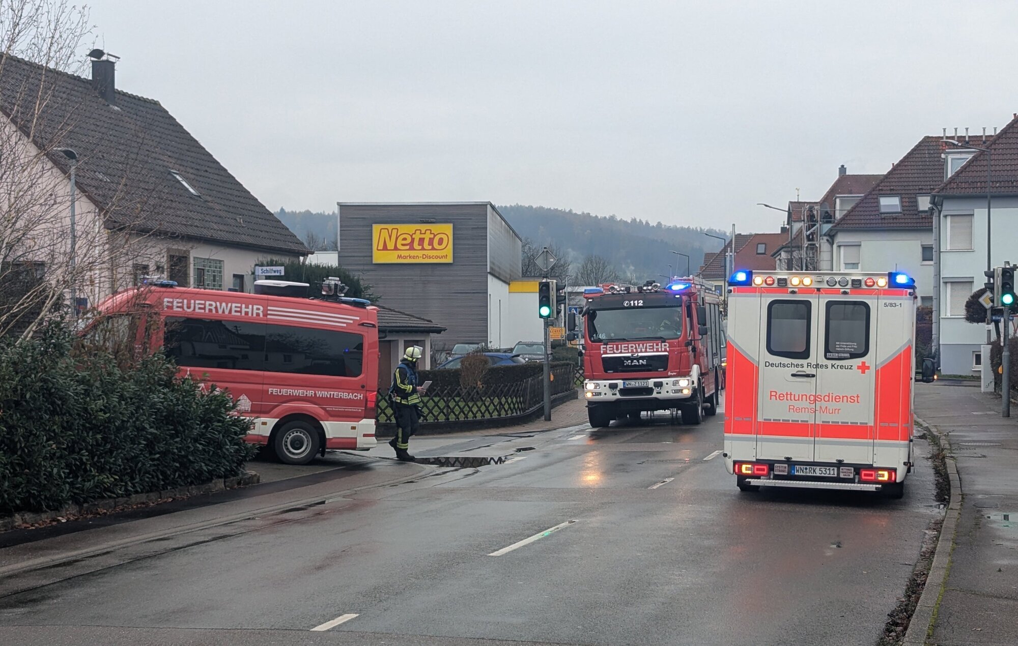 Winterbach. Drei Feuerwehrfahrzeuge, ein Rettungswagen und zwei Fahrzeuge der Polizei sind am Dienstagmittag (25.11.) nach einem Alarm in Winterbach zu einem Wohnhaus in der Schorndorfer Straße, unweit des Netto-Markts ausgerückt.