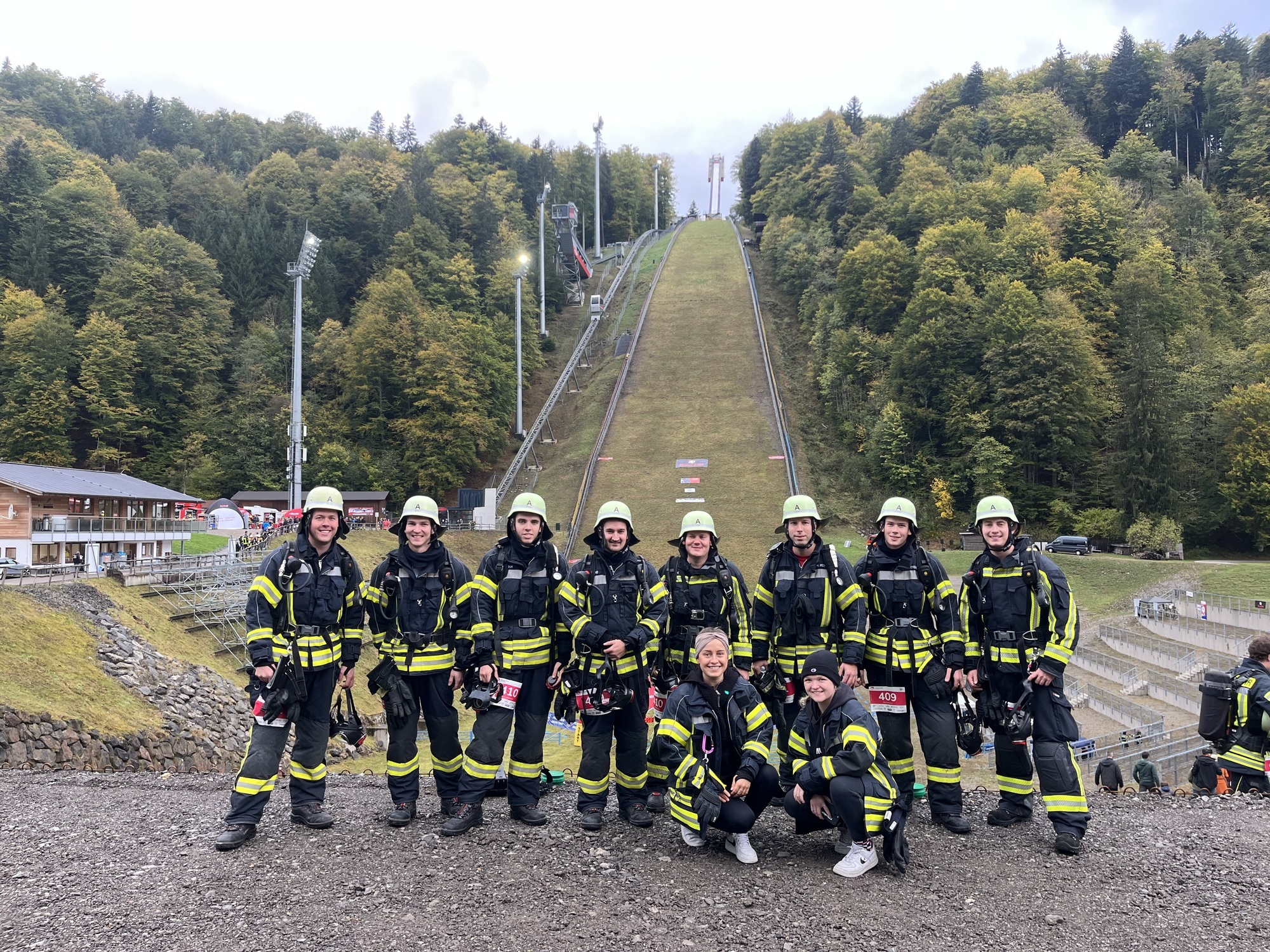 Feuerwehrleute, die in voller Ausrüstung Wengertertreppen hinaufhasten – dieser Anblick bot sich Spaziergängern in den letzten Wochen in der Gegend von Winterbach. Aber kein Brand weit und breit. Der Grund: Ein Wettkampf der besonderen Art braucht ein Training der besonderen Art. Die Winterbacher Feuerwehr war am Wochenende beim ersten Schanzenlauf in Oberstdorf dabei: Über 1040 Treppenstufen Deutschlands höchste Skisprungschanze mit 412 Metern Länge bis in 162 Meter Höhe hinauf. Aber warum