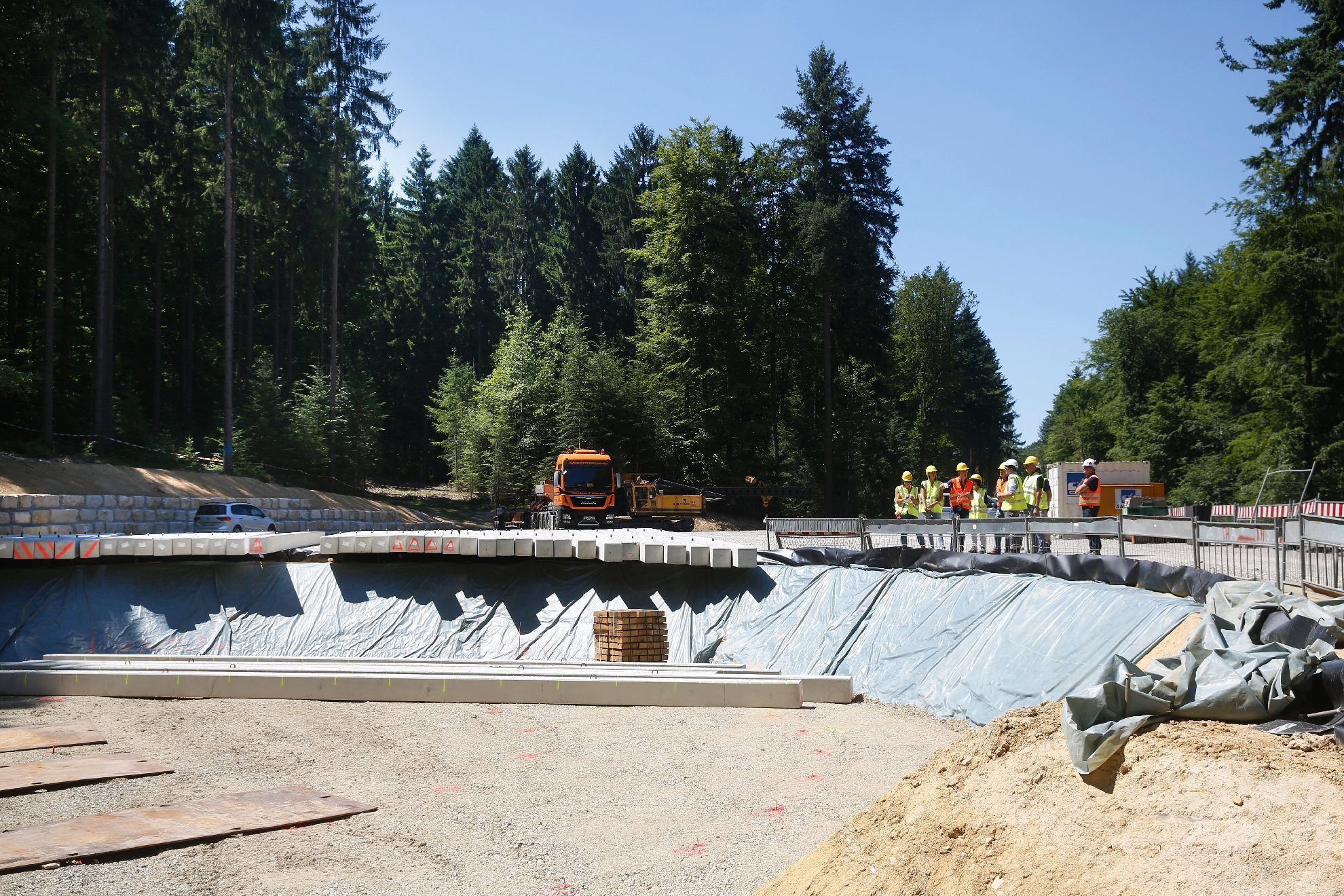 Die Baustelle auf dem Goldboden kann jetzt in die Hochbauphase gehen, weil die EnBW inzwischen auch das letzte Teilchen der Baufreigabe vom Landratsamt erhalten hat. Dabei ging es um die Frage Standsicherheit der beiden östlicheren Windräder. Ein Prüfstatiker musste nachvollziehen, ob die Statik-Berechnungen passen, die die EnBW für die Genehmigung des Windparks eingereicht hat. Die Statik ist ein Punkt, den die Windradgegner stark anzweifeln. Sie befürchten Rutschungen des Knollenmergels, einer sehr instabilen Gesteinsschicht, die es am Standort der Windräder gibt. Die EnBW hat für zwei der Windräder Pfähle in den Boden gerammt, die die Anlagen sichern sollen.