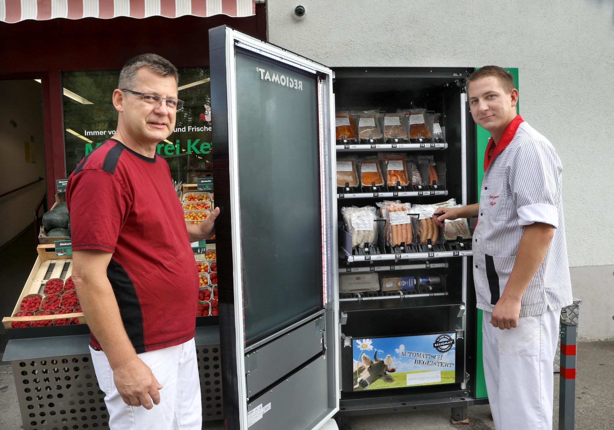 Ein bisschen besorgt um ihren neuen Automaten sind die Kefers schon. Immerhin steht der direkt vor dem Eingang, dort, wo auch die Kunden parken. Zwei umklappbare Metallpfeiler sollen das wertvolle Inventar vor schlecht geplanten Parkmanövern schützen, außerdem ist darüber eine Überwachungskamera angebracht. Bis jetzt gab es aber noch keine Probleme mit Vandalismus. Dafür stößt die neue Geschäftsidee auf umso mehr Beifall bei den Kunden, die Nachfrage ist definitiv da: „Am Wochenende sehen wir die Leute hier Schlange stehen“, so Betriebsinhaber Ernst Kefer.