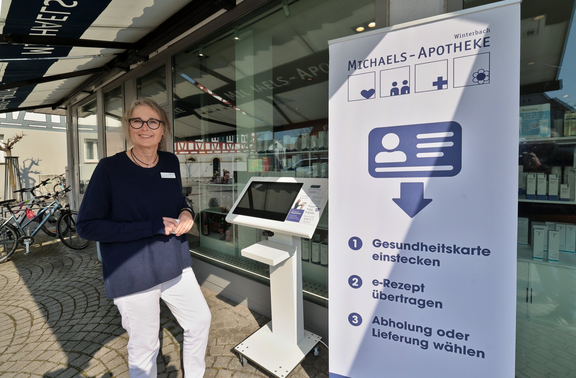 Winterbach. Schlangestehen ist in der Michaels-Apotheke in Winterbach jetzt in vielen Fällen unnötig. Denn zwei neue Mitarbeiter unterstützen das Team, zwei „Quotenmänner“, wie Sigrid Dätsch-Lokies, sagt: Bobby und Ludwig, die sogar außerhalb der Öffnungszeiten, rund um die Uhr arbeiten. Der eine, Bobby, gibt vorbestellte Medikamente aus, der andere, Ludwig, nimmt Bestellungen entgegen und kann E-Rezepte auslesen. „Wir sind deutlich schneller als die Online-Apotheke“, sagt