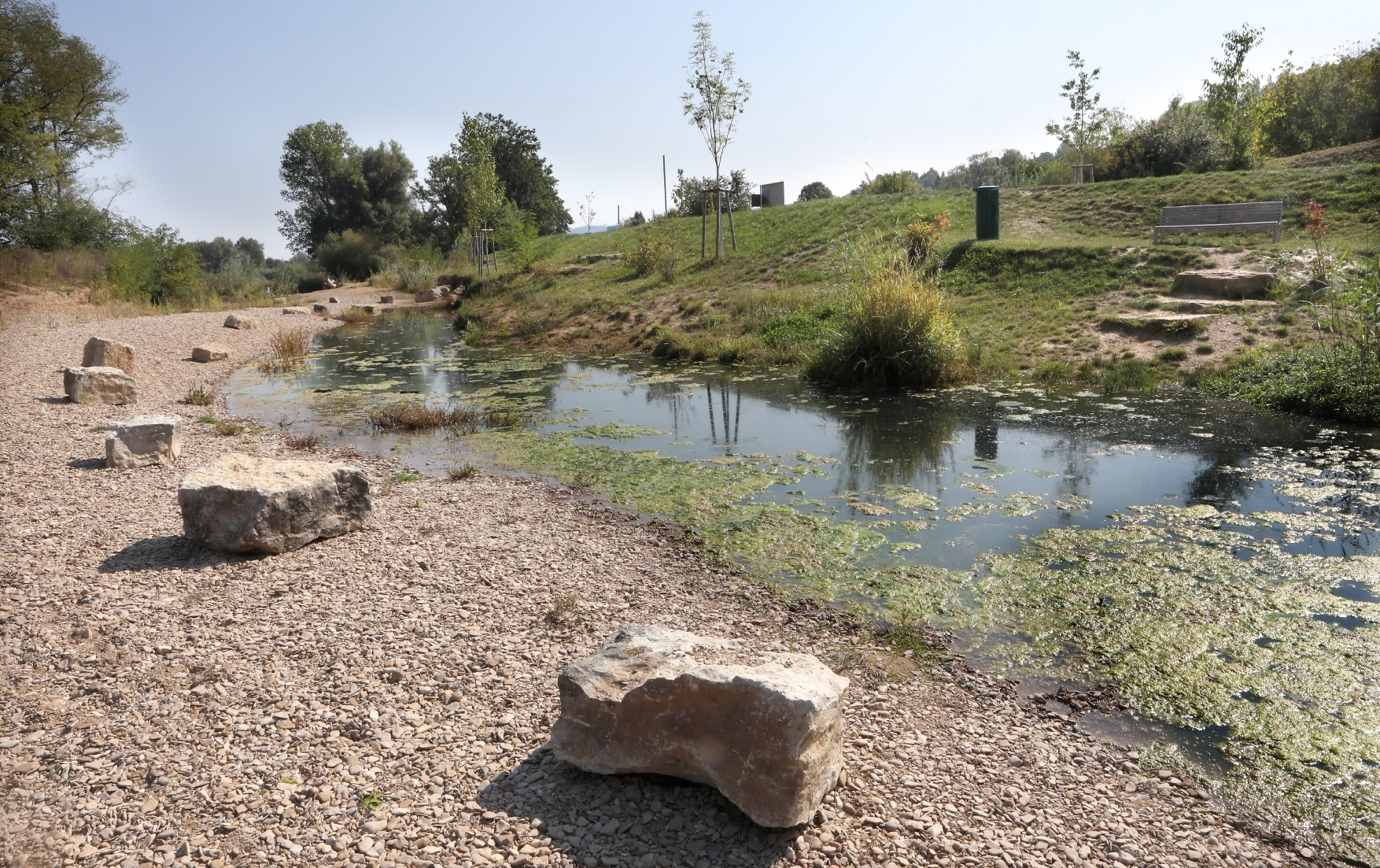 Nächster Versuch: Nachdem die vor einigen Wochen aufgestellten Barrieren aus Holzpflöcken mit dazwischengespannten Seilen an den meisten Stellen sofort wieder herausgezogen wurden, legt das Regierungspräsidium Stuttgart (RP) den Menschen am renaturierten Rems-Abschnitt zwischen Winterbach und Remshalden nun Steine in den Weg. In die massiven Blöcke, die bereits liegen, sollen noch Ösen gebohrt werden, damit dazwischen auch wieder Seile gespannt werden können und dann signalisieren: Bitte