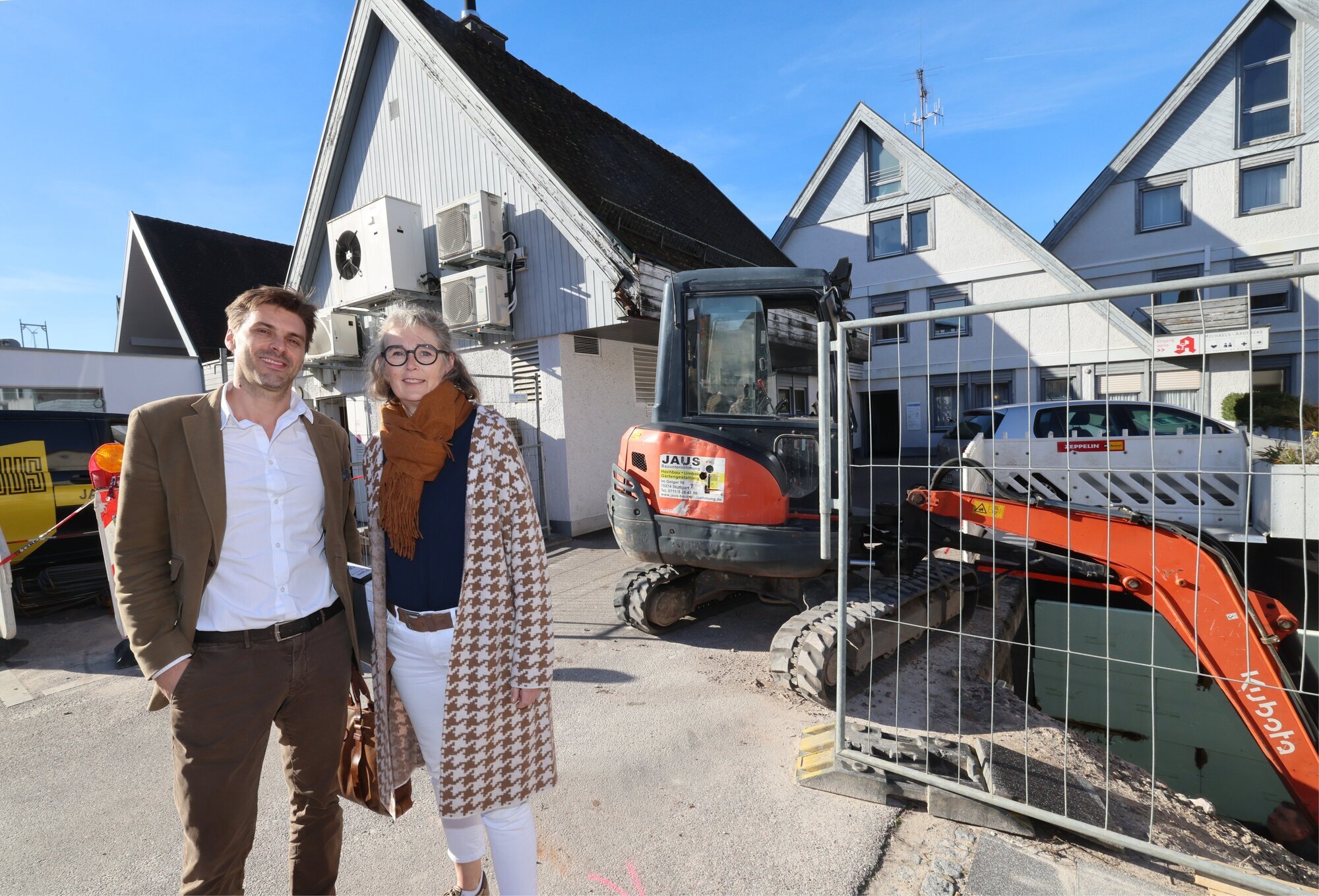 Winterbach. Das Gebäude prägt die Winterbacher Ortsmitte mit seinen drei markanten Giebeln und beherbergt mehrere Praxen, Kik, die Bäckerei Mauerer und die Michaels-Apotheke. Jetzt wird das Haus im Oberdorf teilweise umgebaut und saniert. Hinten zum Bahnhof hin, wo schon seit einigen Tagen gebuddelt wird, entsteht ein neuer Anbau. Was genau gemacht wird, hat uns Benjamin Mudroh, Geschäftsführer der Schorndorfer Palm KG bei einem Vor-Ort-Termin erklärt.