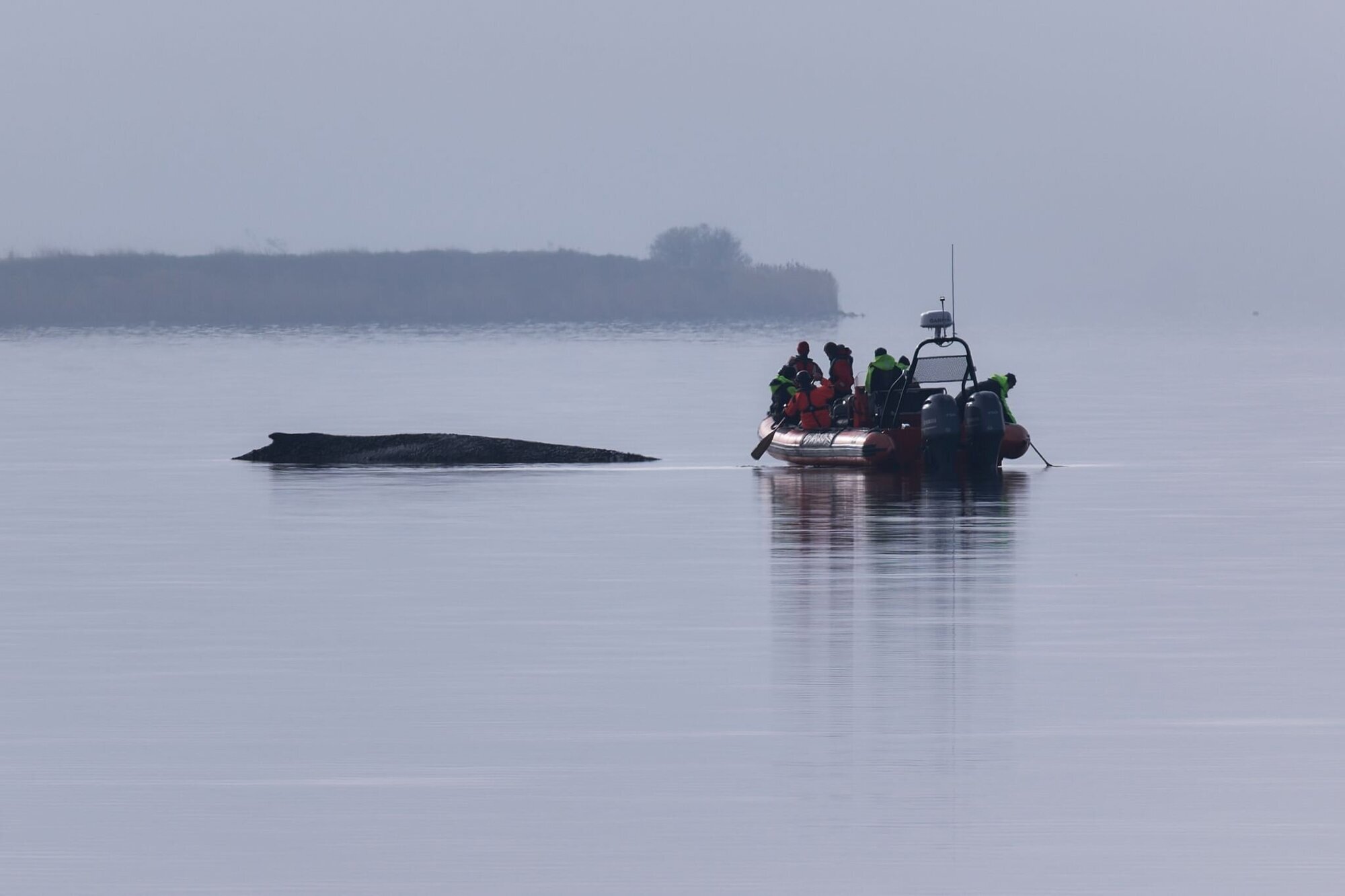 Immer wieder hatten sich Meeresschützer ein Bild vom Zustand des Wals gemacht. © Marcus Golejewski/dpa