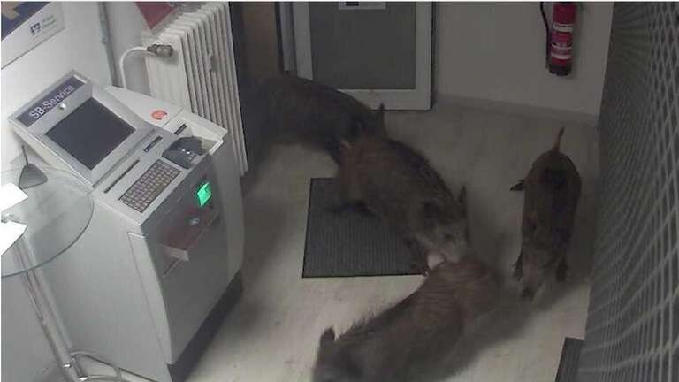Ellwangen-Röhlingen. Was war denn das am Montag mitten in der Nacht? Eine Horde Vandalen macht Röhlingen (Ostalbkreis) unsicher? Einbrecher in der VR-Bank-Zweigestelle? Und niemand hat davon etwas mitbekommen? Als Beweis taugt die Aufnahme der Überwachungskamera in dem Raum mit dem Geldautomaten. Es ist zu sehen, wie die Tür aufgedrückt wird und ... es stürmen vier Wildschweine in die Bank! Maskiert? Echt!