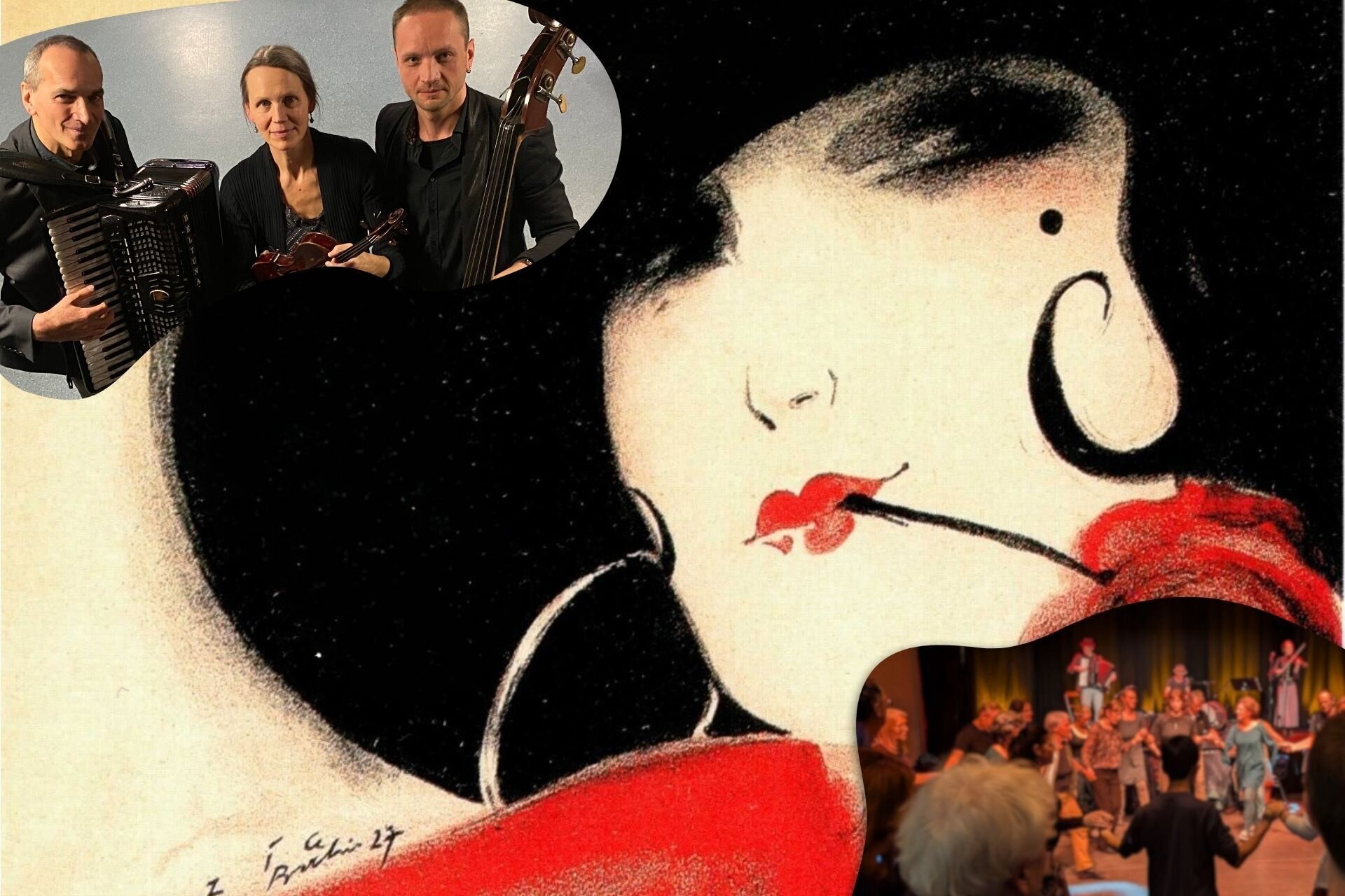 Das „Trio Bluesette“ spielt sich mit Geige, Akkordeon und Bass quer durch Europa: von französischen Musette-Walzern über feurige Czardas bis hin zum argentinischen Tango – poetisch, lebendig, tanzbar. Wenn DJ JK übernimmt, zieht die Salsa- und Bachata-Welle durch den Raum und niemand bleibt sitzen.