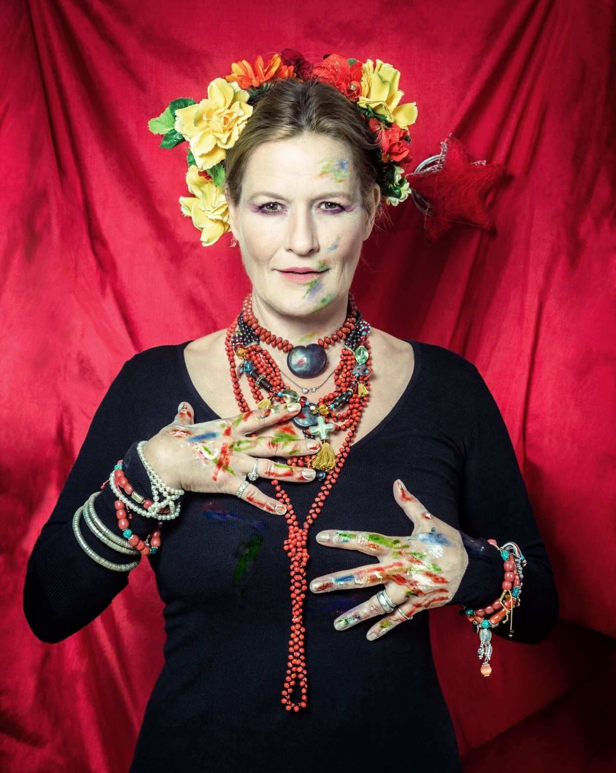 Die unbändige Lebensfreude und innere Zerrissenheit, der Humor und die Leidenschaft der mexikanischen Künstlerin werden durch großformatige Projektionen ihrer Bilder ergänzt. Mit ihrer unverwechselbaren Stimme, von sanft bis rau, lässt die Schauspielerin die große mexikanische Malerin Frida Kahlo in Briefen, Gedichten und Tagebucheinträgen zu Wort kommen.