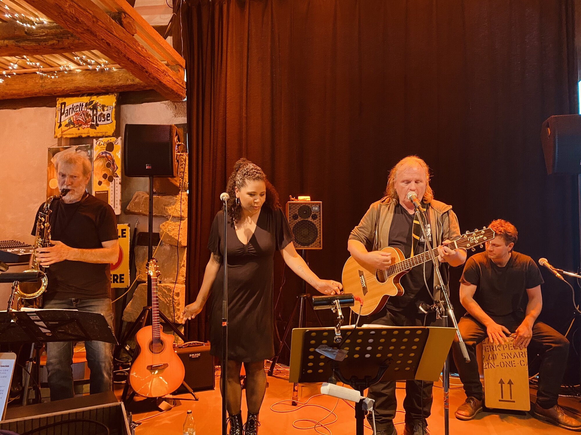 Begleitet wird Cassandra von einem eingespielten Trio erfahrener Musiker, das sein akustisches Set gezielt auf die intime Atmosphäre des Bistros zuschneidet. Trevor Brown wechselt zwischen Saxophon und Konzertgitarre, Gez Zirkelbach sorgt an der Akustikgitarre und mit Gesang für zusätzliche Klangfarben. Rhythmische Basis sind Luis Zirkelbach an Cajón, Percussion und Vocals. Zusammen erschaffen sie ein stimmungsvolles Klangbild, das zwischen sanftem Soul und dynamischem Blues pendelt – immer mit viel Gefühl, Groove und Persönlichkeit.