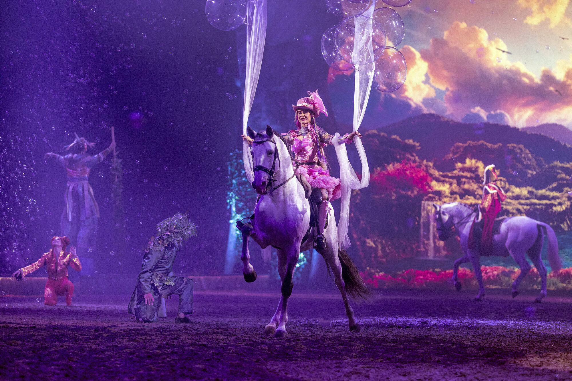Zu sehen sind feurige Andalusier, Miniponys, waghalsige Trickreiter und gefühlvolle Freiheitsdressuren. Cavalluna betont, dass das Wohl der Tiere Vorrang hat. Hinter den Kulissen gehören ein strukturierter Tagesablauf und regelmäßige tierärztliche Kontrollen zum Programm. Von Montag bis Freitag leben die Pferde in einem festen Stall mit viel Auslauf, Pflege und entspannten Ausritten.
